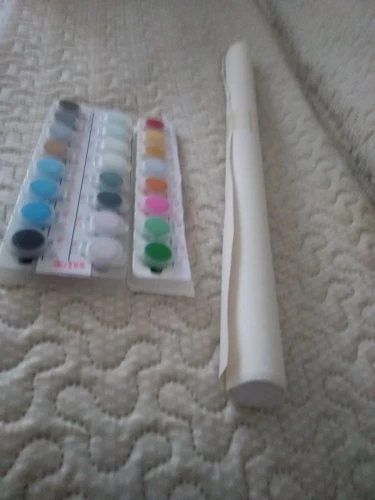 Продукт очень хорошо защищен и упакован. В дополнение к мешку он был защищен в пластиковом и воздушном цилиндре, чтобы избежать ударов или doubleces. В комплект входят холст, картины и три кисти. В то же время холст собирается вокруг другого пластикового цилиндра, чтобы предотвратить появление морщин, которые могут повлиять на рисунок. Продавец ушёл, указав, где находится посылка, хотя это заняло некоторое время, это того стоит, так как она хорошо защищена. Я еще не пользовался им, когда попробовал картины коменто.