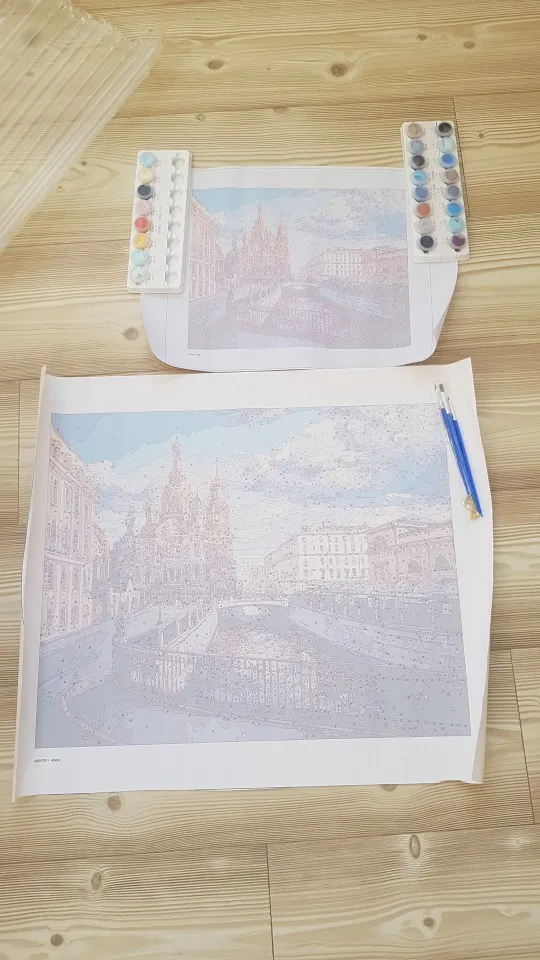 Заказала 2 картины, отправили одной посылкой. Картины пришли хорошо упакованы, не мятые, краски свежие. На холст нанесён не просто рисунок с границами и номером цвета, но и есть оттенок цвета, это упростит рисование. Мне понравилось. Спасибо!