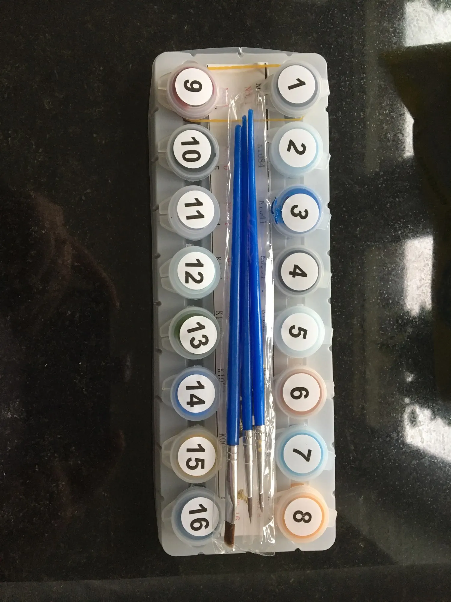 Verything прибыл в идеальном состоянии, как и в описании! Холст отличный, я раньше рисовал по номерам, но холст был белым, этот цветной, мне нравится это! Цвета свежие и красиво упакованы, с их номерами на банке, есть также кусок бумаги с дизайном (очень полезно) и 3 кисти. Я не могу дождаться, когда начну рисовать! Очень доволен своей покупкой, я рекомендую это!