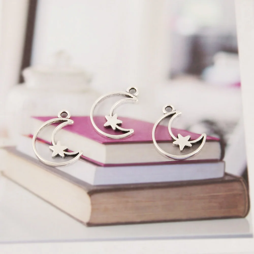 Подвески серебристого цвета в форме полумесяца, 50 шт.
