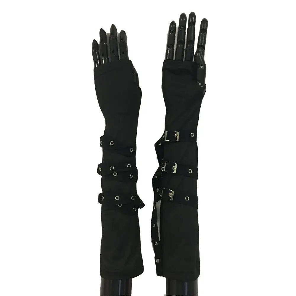 Бондаж унисекс с пряжкой, теплые нарукавники, ремни с металлическими пряжками женские черные перчатки без пальцев в готическом стиле