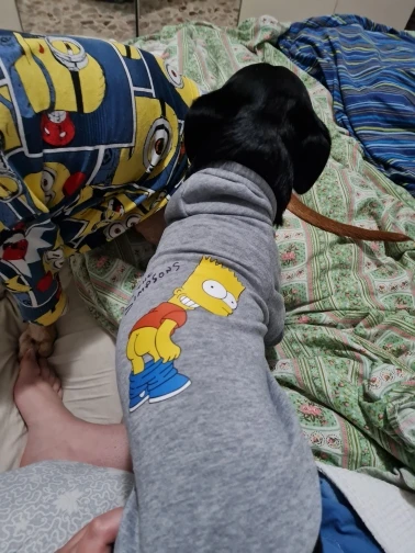 chegou rápido, ótimo tecido.. A impressão do Bart já está começando A sair depois da 3 lavagem... Mas fora isso a roupa é boa para o frio. XL ficou bem no meu cão de 6,6kg