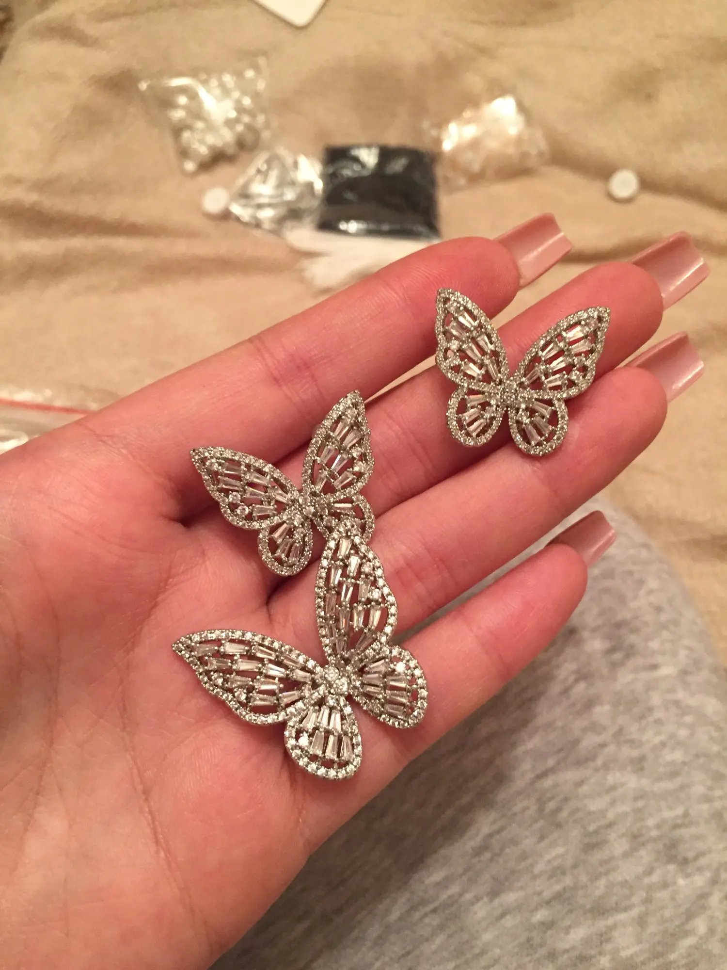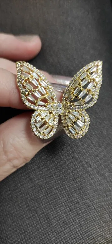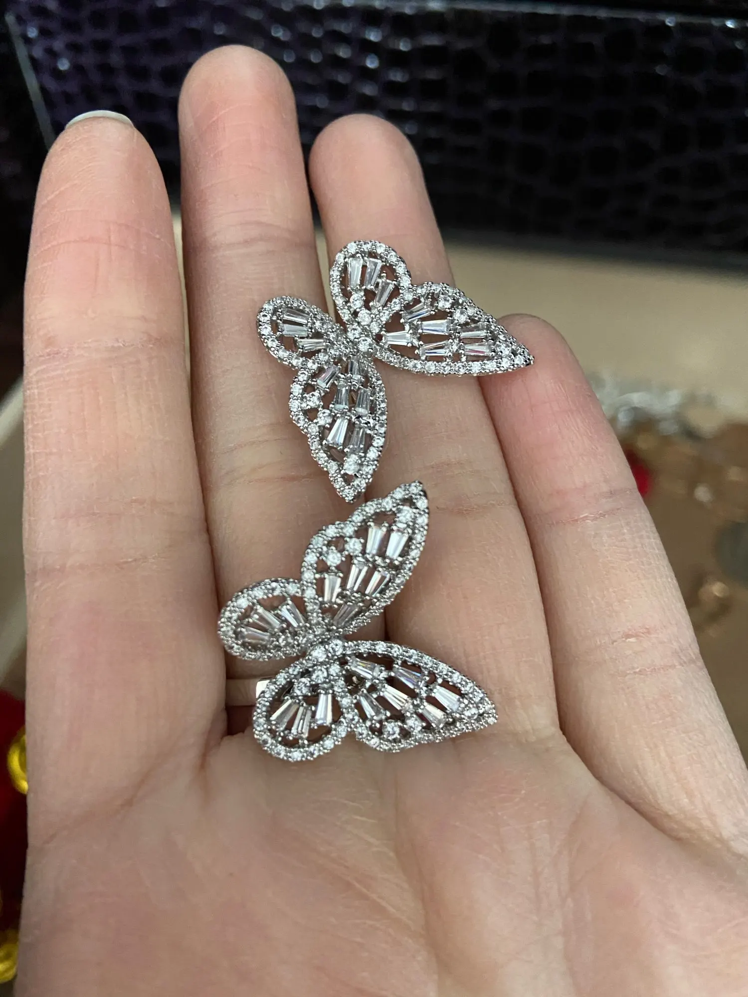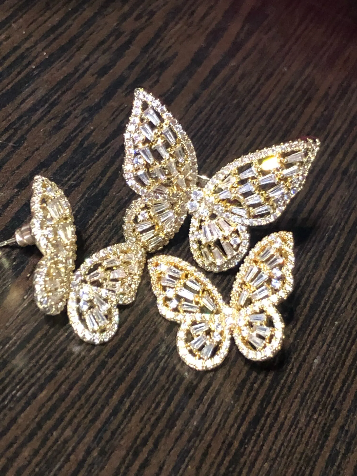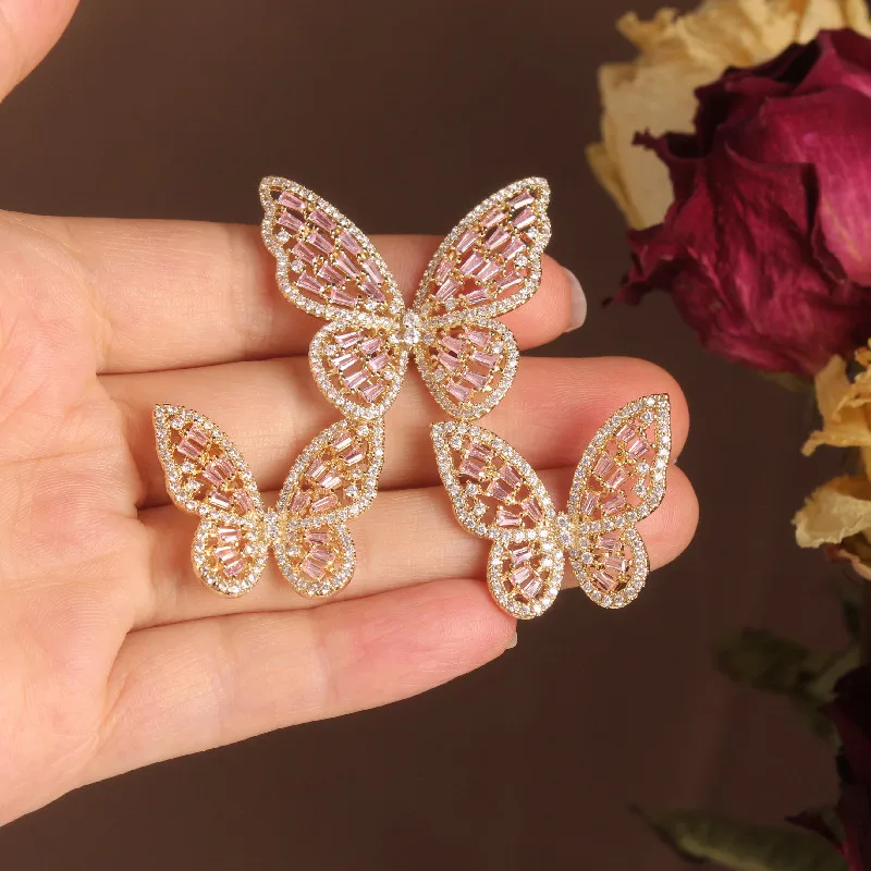 Набор из медных колец и сережек, инкрустированные серьги из циркона, с бабочкой