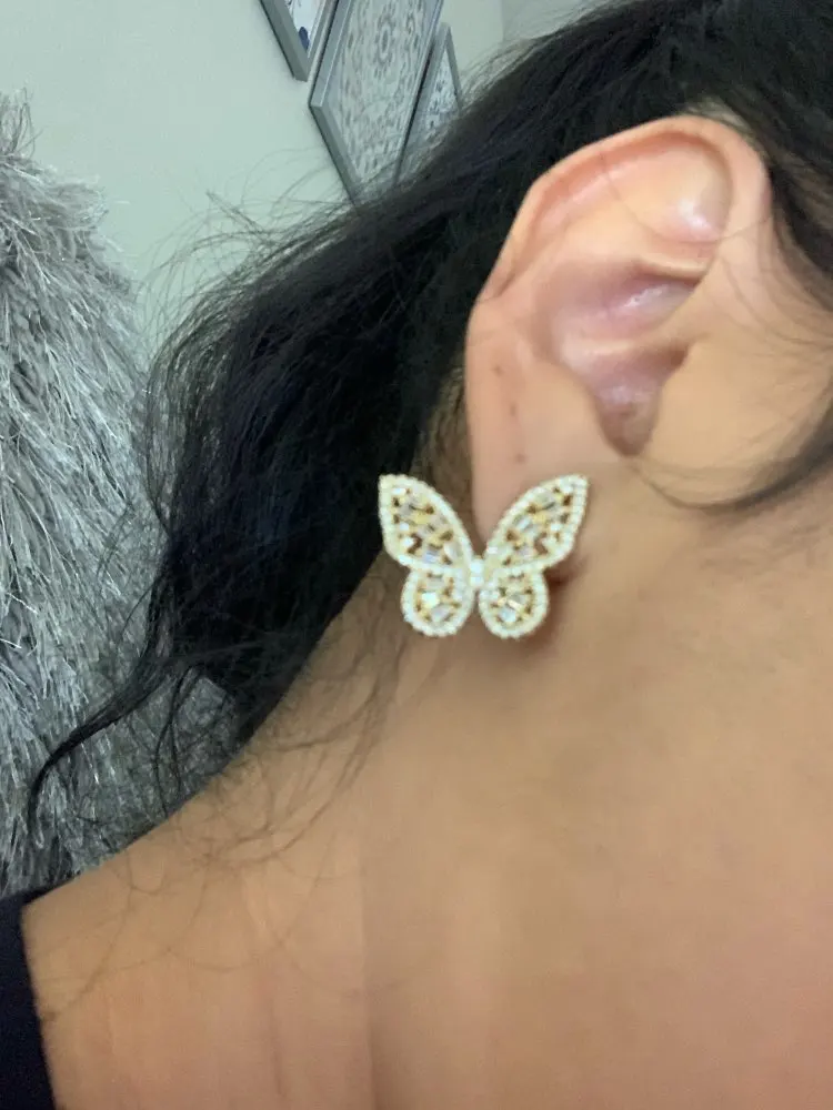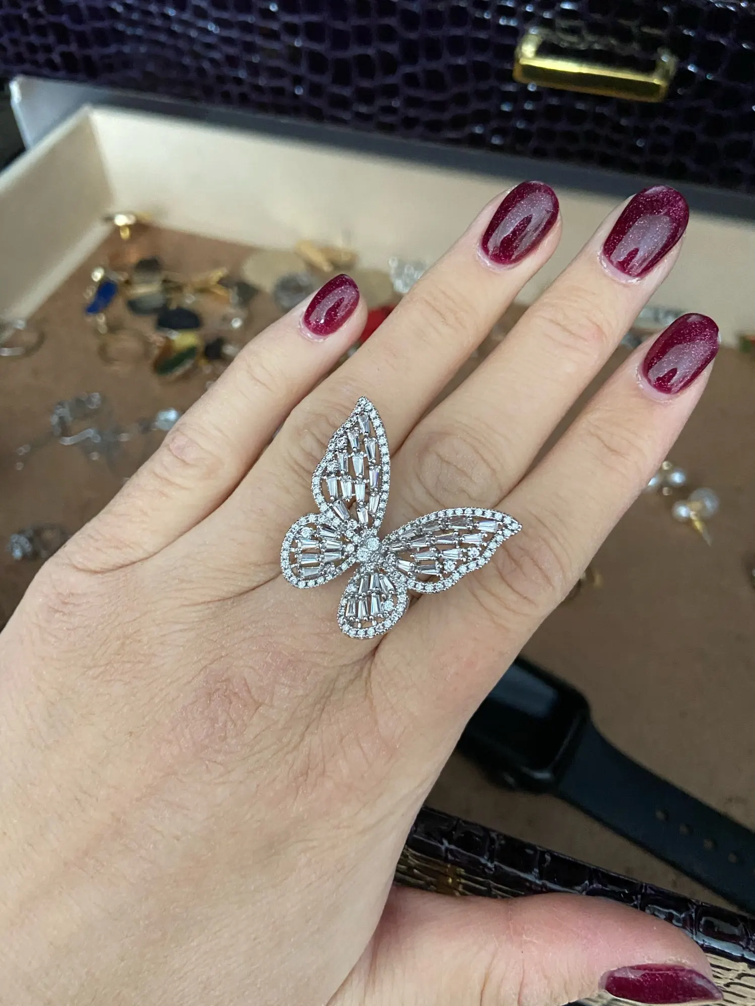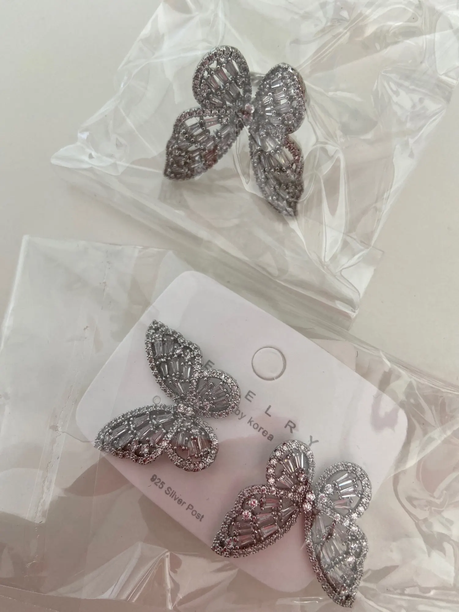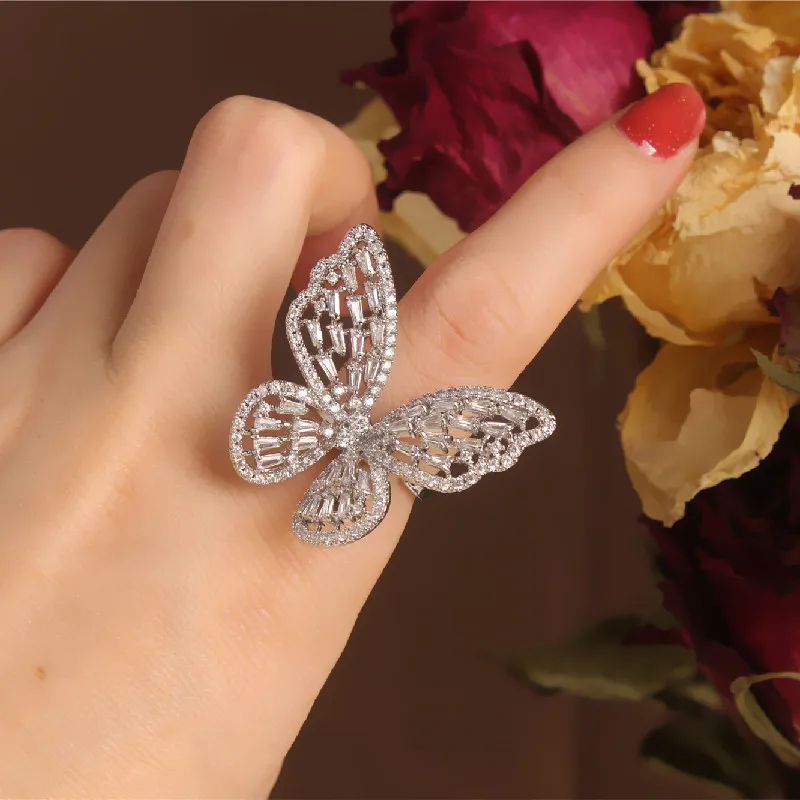Набор из медных колец и сережек, инкрустированные серьги из циркона, с бабочкой