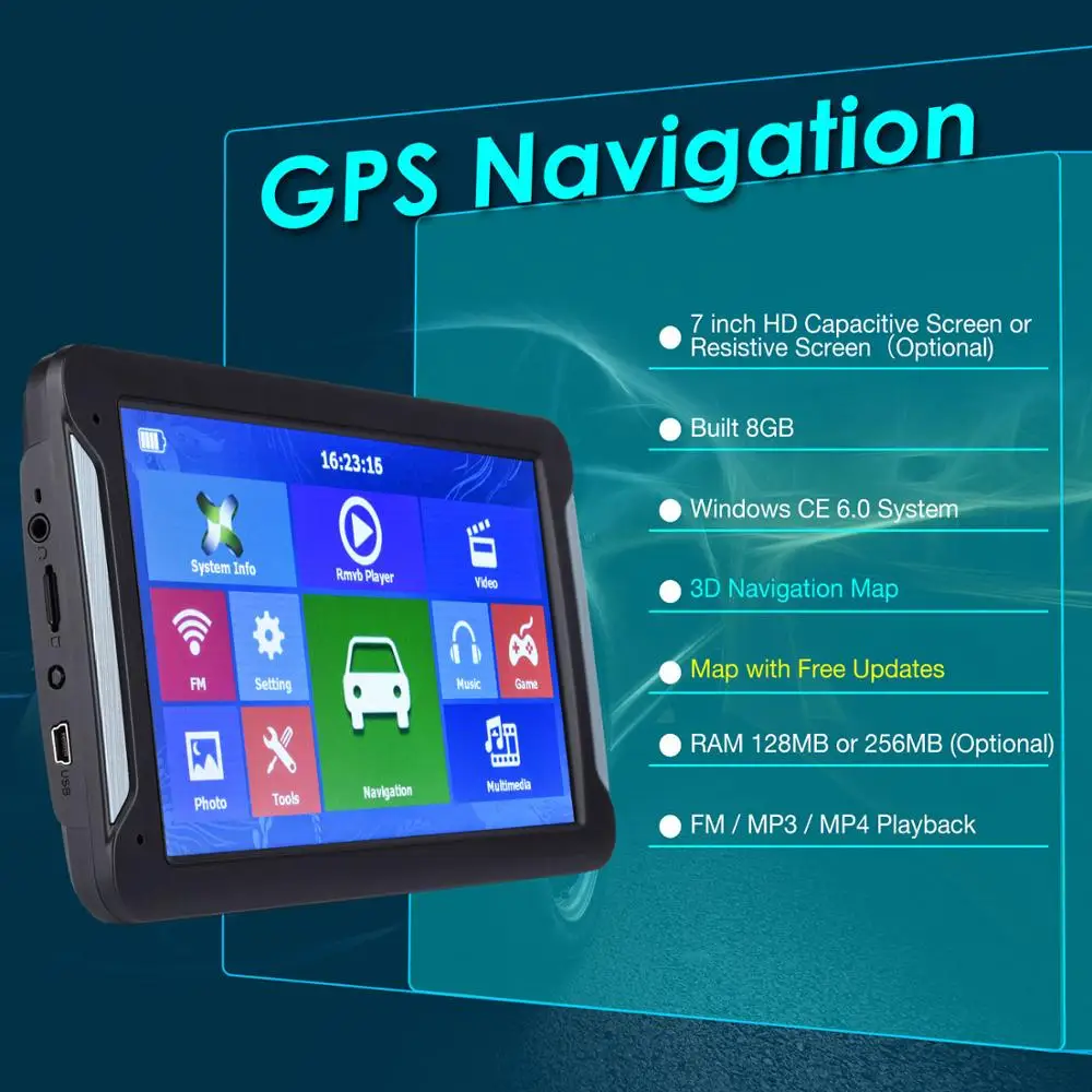 Автомобильный GPS навигатор Oriana, 7 дюймов, HD, FM, 8 ГБ, 256 Мб