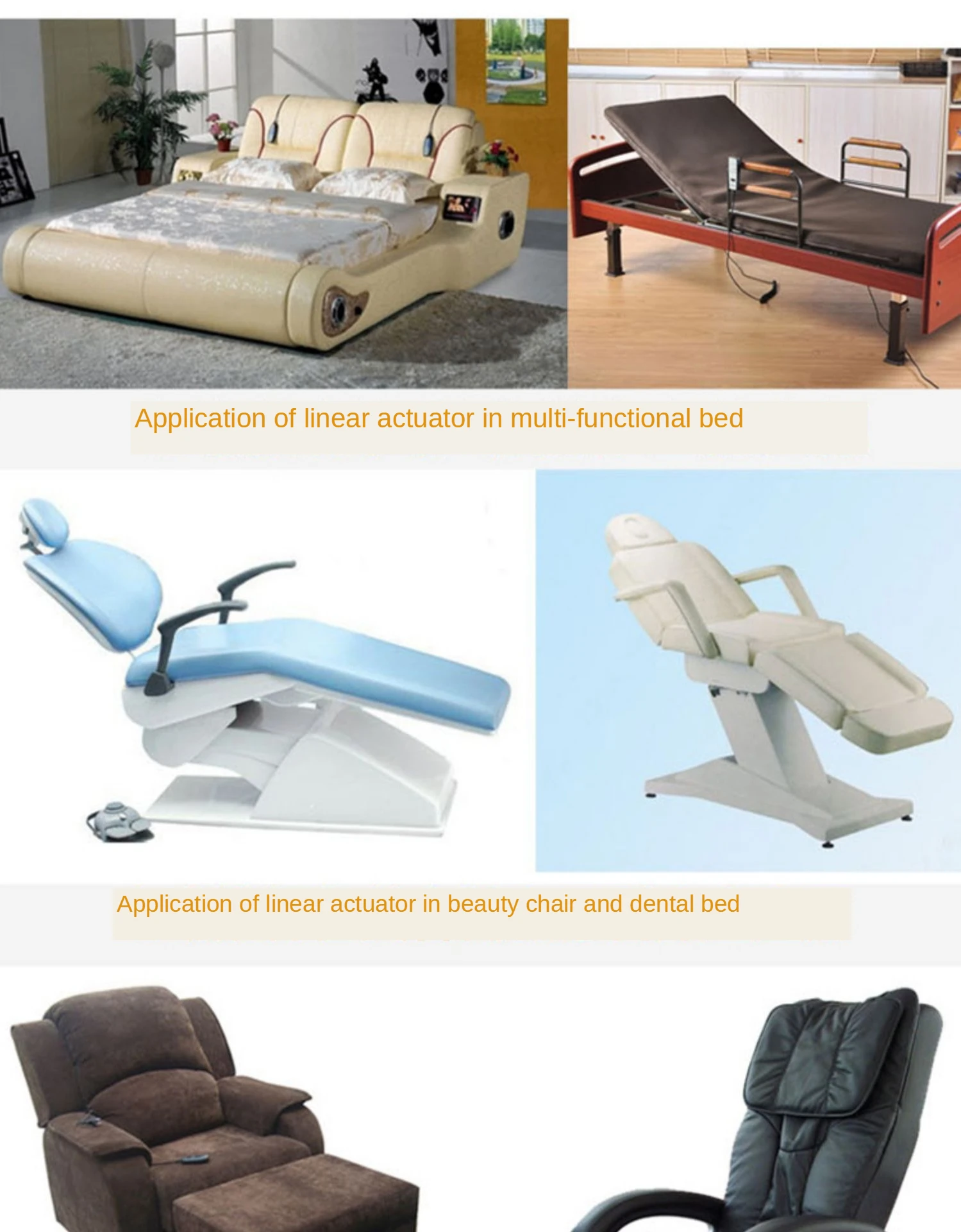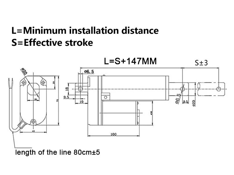 Материал: алюминиевый сплавНоминальная мощность: 20 Вт максимум 30 ВтДвигатель постоянного тока с постоянным магнитом; Напряжение: 12 В, 24 ВСтандартная степень защиты: IP54Применение: телевизионная консоль. Диван для массажа. Электрическая кровать. Медицинское кресло. Электрическое оборудование ....Самозапирающаяся сила линейного привода составляет около 80%