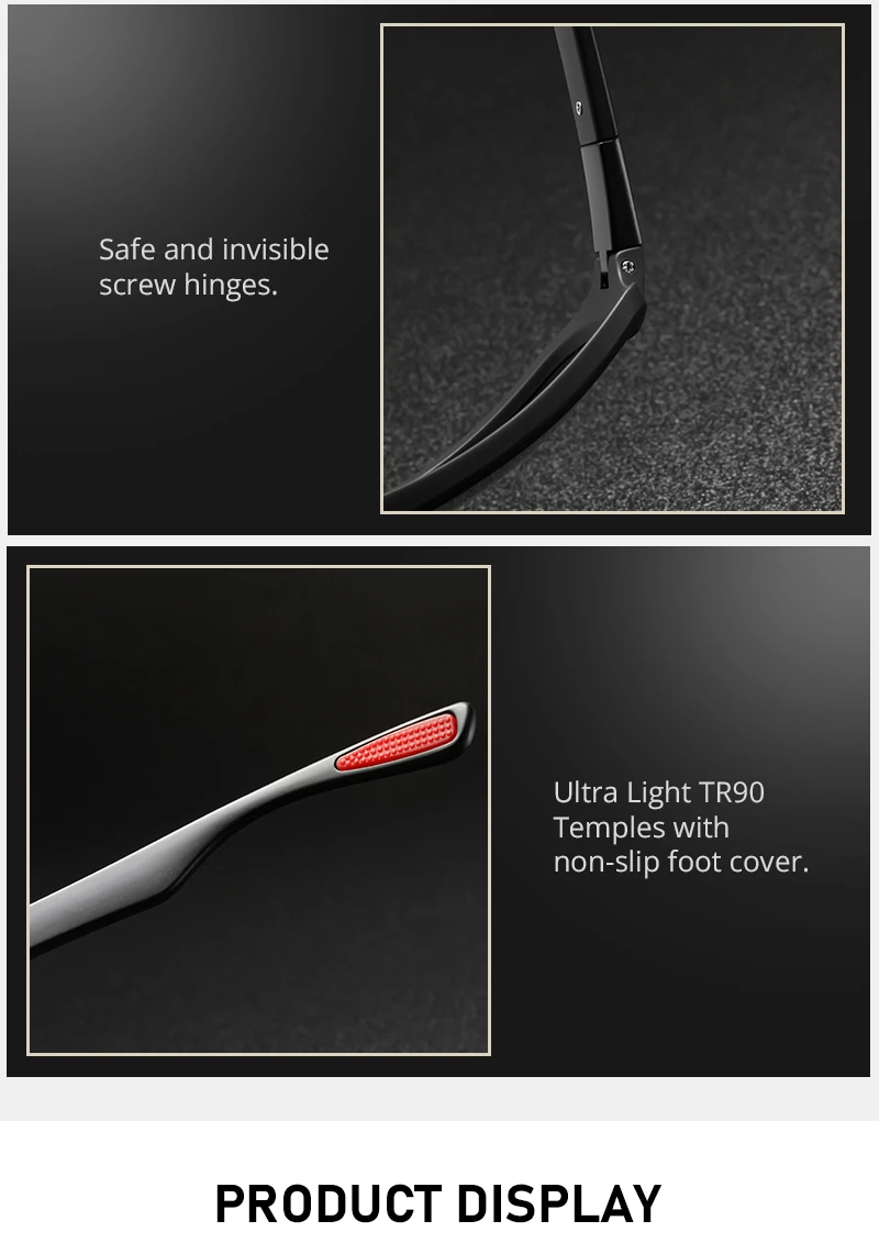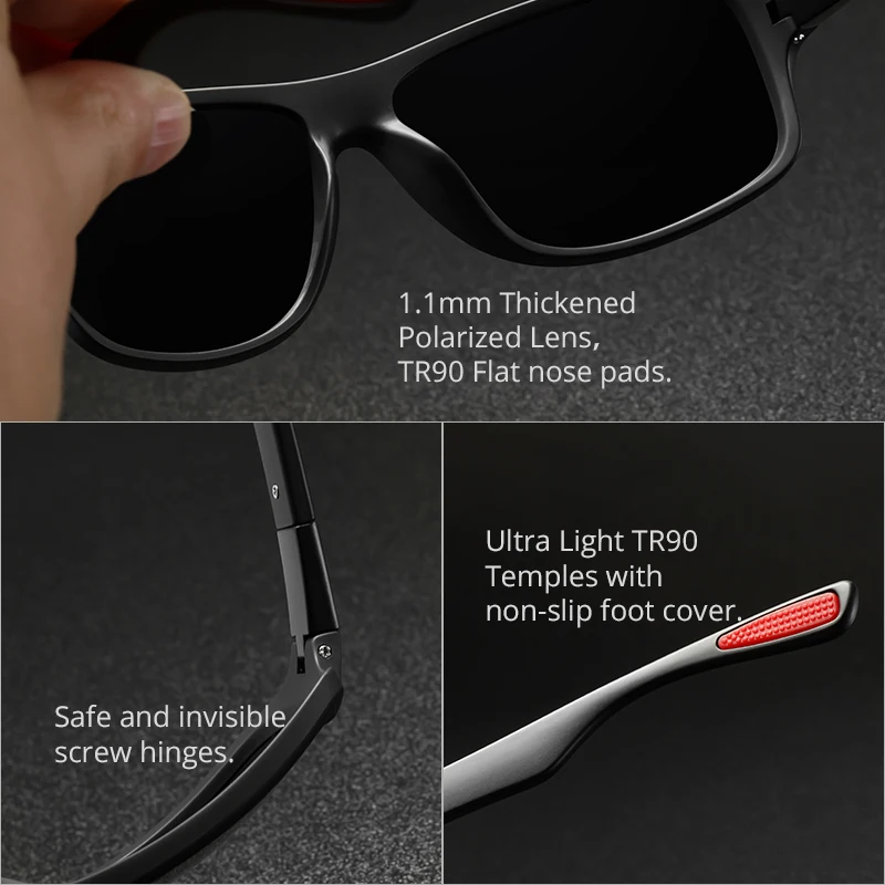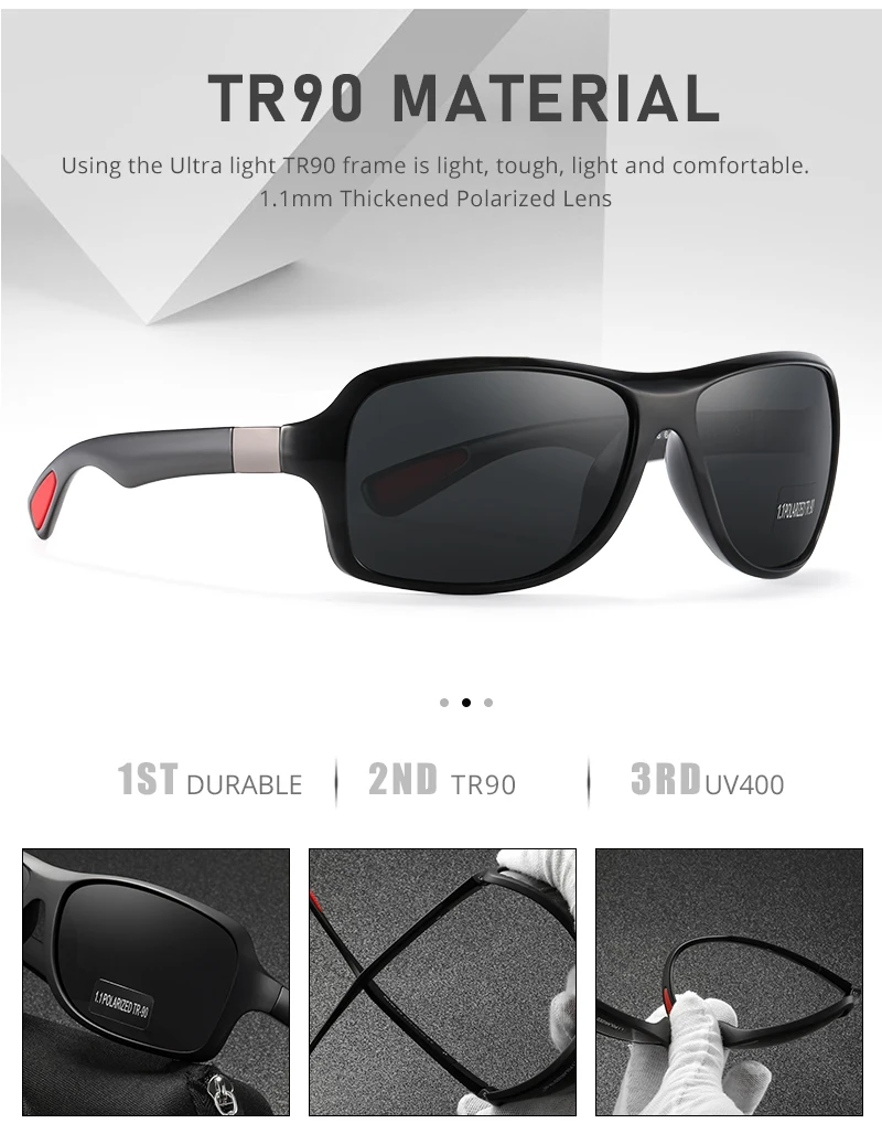 Материал оправы: TR90 Длина дужек: TR90 Объектив Материал: TAC поляризованные (1,1 мм толщина) Костюм для мужчин Функция линз: защита UV400 + поляризационные