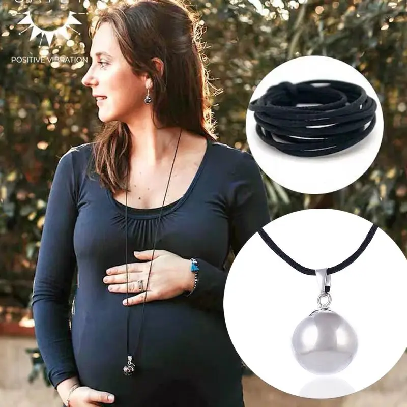 Серебряное ожерелье в форме шара гармонии, блестящее винтажное ожерелье для беременных, подвеска в виде колокольчика, 40 дюймов, длинная цепочка, ожерелье для матери, ювелирное изделие