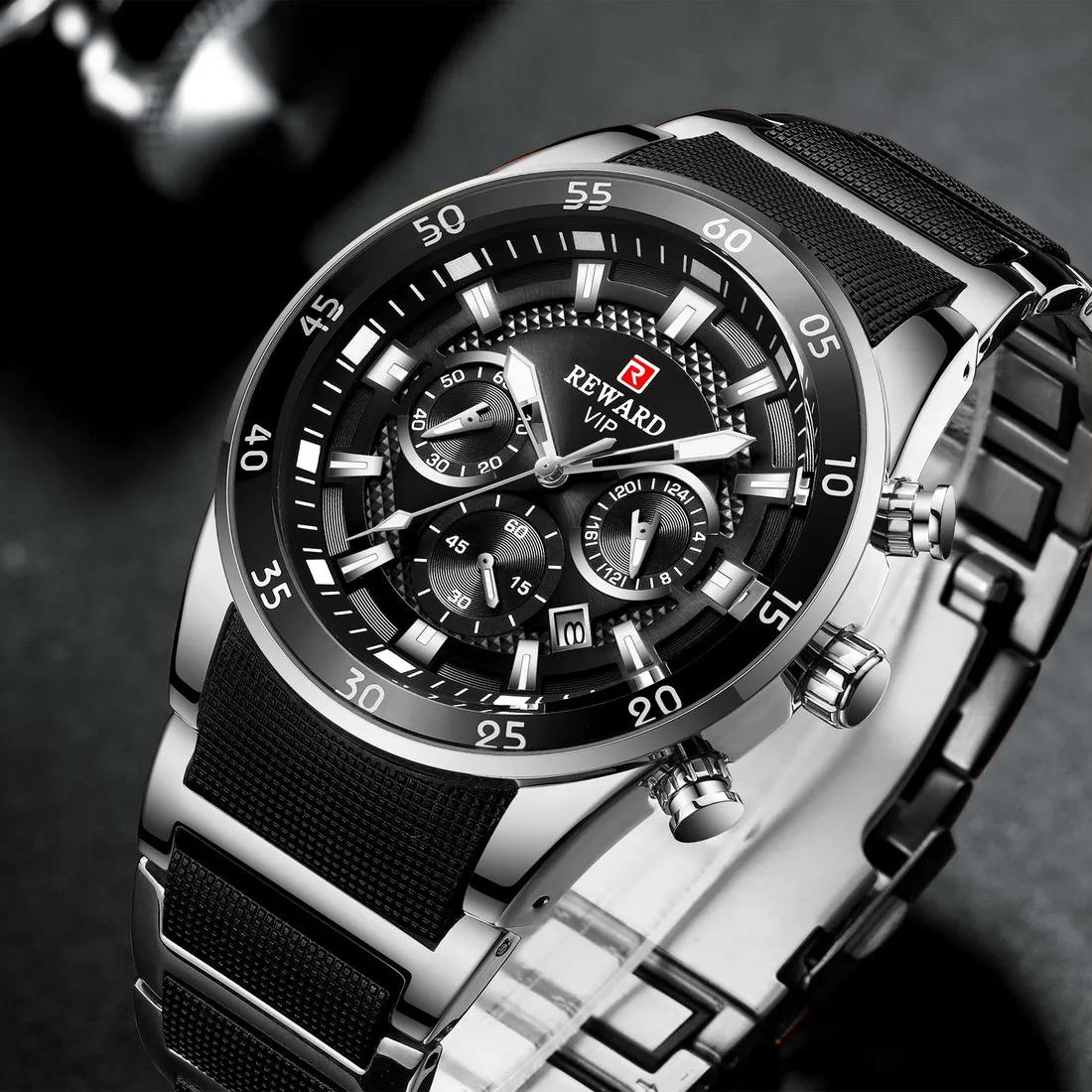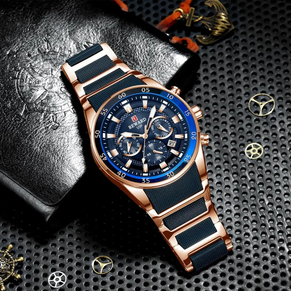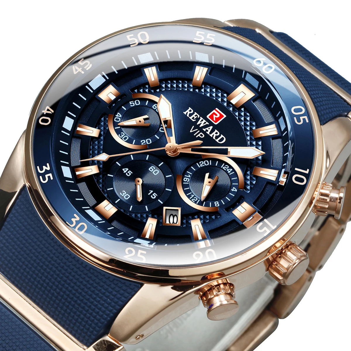 Спортивные мужские часы REWARDБренд: наградаСтиль: Модный, Повседневный, деловой, роскошный, спортивныйПодходящий повод:Идеально подходит для всех случаев и мероприятий: вечерние, юбилейные, деловые, повседневные, спортивные, домашние или повседневныеОсновная особенность:1. Часы классического дизайна, модный спортивный стиль2. Новые модные тенденции силиконовые часы с ремешком.3. Гарантия на 12 месяцевХарактеристики:-Диаметр циферблата: 45 мм-Чехол Толщина: 13 мм-Длина часов: 220 мм-Ширина ремешка: 22 мм-Вес часов: 142 г-Часовой механизм: кварцевый (требуется батарея)-Материал зеркала: Hardlex-Тип застежки: Пряжка-Водонепроницаемость: Водонепроницаемость (не для плавания или душа)-Функция: хронограф; Canlendar; Светящиеся стрелкиПосылка включает в себя:Часы-1 шт. (подарочные коробки на выбор)