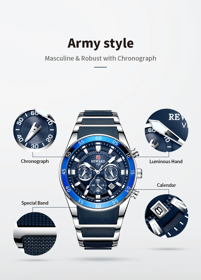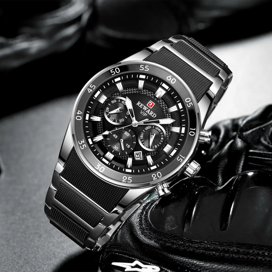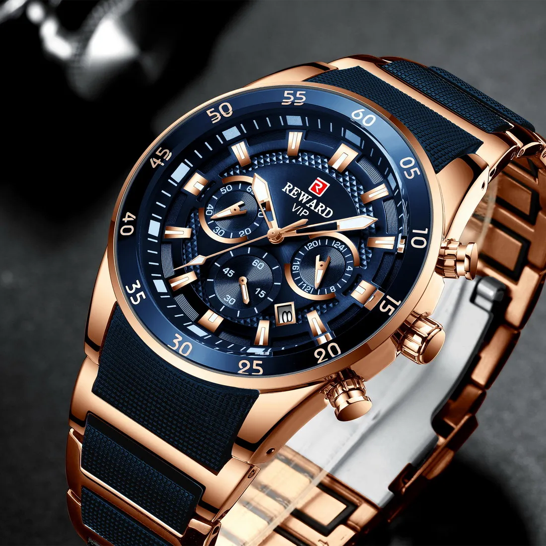 Спортивные мужские часы REWARDБренд: наградаСтиль: Модный, Повседневный, деловой, роскошный, спортивныйПодходящий повод:Идеально подходит для всех случаев и мероприятий: вечерние, юбилейные, деловые, повседневные, спортивные, домашние или повседневныеОсновная особенность:1. Часы классического дизайна, модный спортивный стиль2. Новые модные тенденции силиконовые часы с ремешком.3. Гарантия на 12 месяцевХарактеристики:-Диаметр циферблата: 45 мм-Чехол Толщина: 13 мм-Длина часов: 220 мм-Ширина ремешка: 22 мм-Вес часов: 142 г-Часовой механизм: кварцевый (требуется батарея)-Материал зеркала: Hardlex-Тип застежки: Пряжка-Водонепроницаемость: Водонепроницаемость (не для плавания или душа)-Функция: хронограф; Canlendar; Светящиеся стрелкиПосылка включает в себя:Часы-1 шт. (подарочные коробки на выбор)