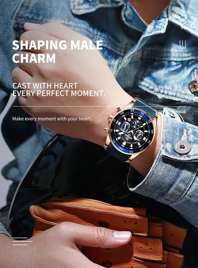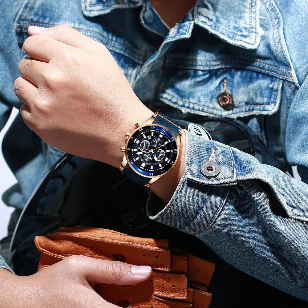 Часы наручные мужские кварцевые, Спортивные Повседневные брендовые люксовые с Полноразмерным ремешком, с хронографом