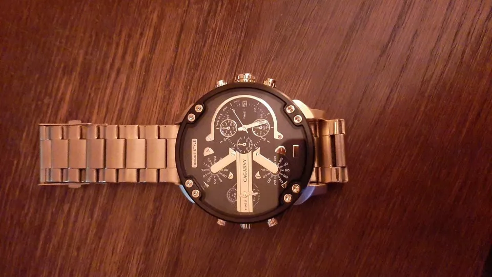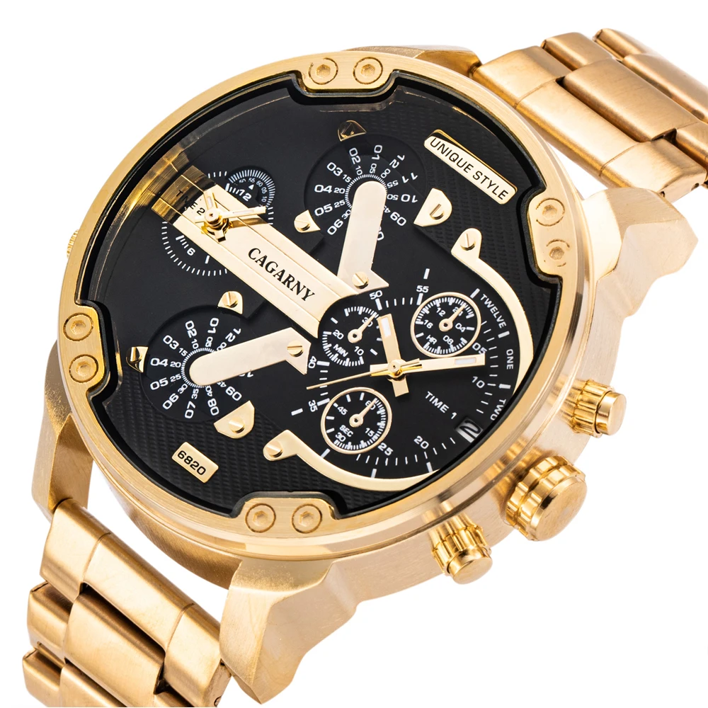 Горячая Мода Мужские часы Топ бренд класса люкс Cagarny двойной дисплей военные Relogio Masculino золотые Стальные кварцевые часы мужские часы
