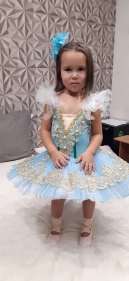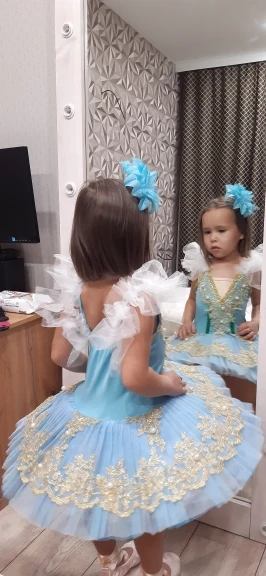Восхитительная пачка! Красота невероятная! Смотрится дорого, сделана качественно. Форму держит идеально! Пришла в срок. Продавец ещё подарки положил: украшение на голову и нарукавники из фитина. Спасибо! Дочка в восторге! Брали размер на 6 лет, дочке 6, села на неё идеально, даже есть запас на вырост.