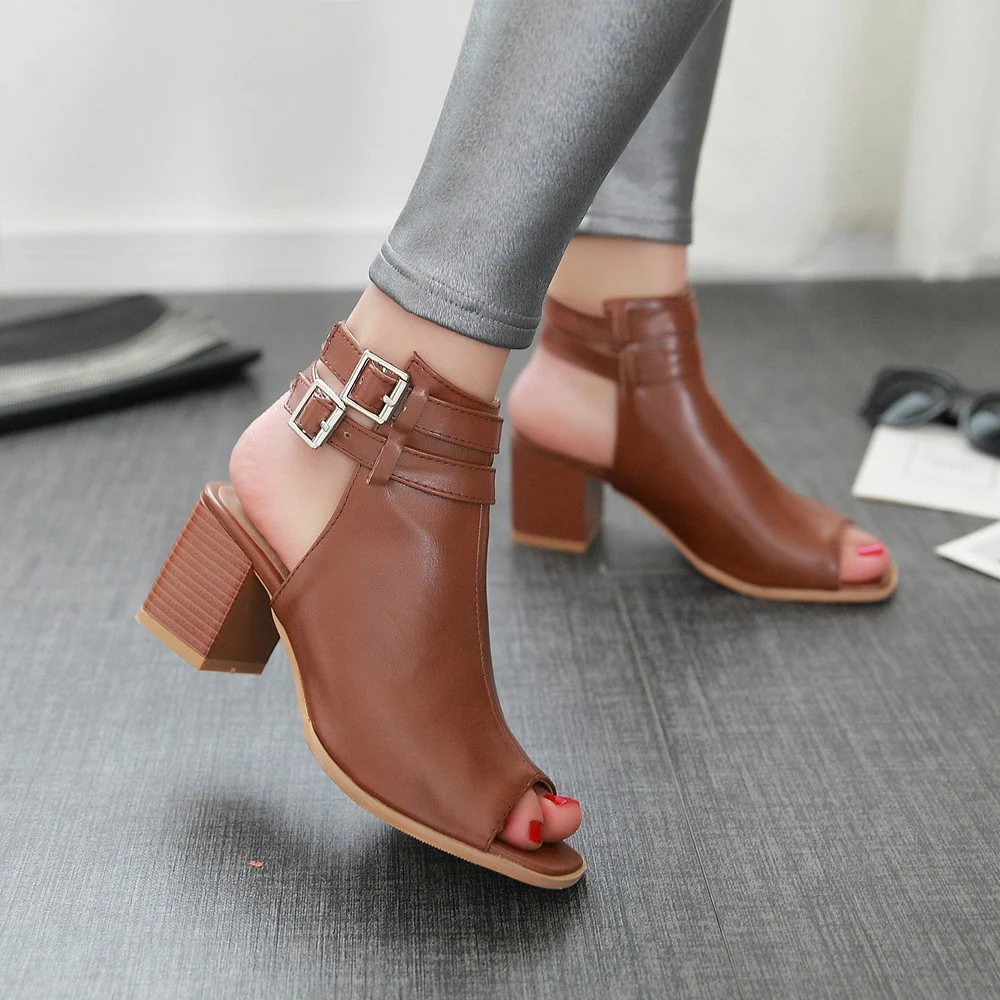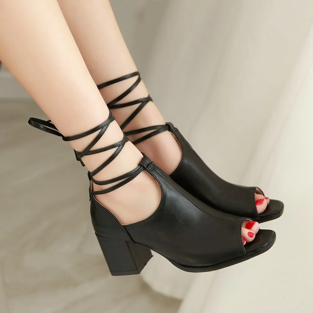 Сандалии женские на высоком каблуке, босоножки-гладиаторы с открытым носком, с ремешком на щиколотке, черные, коричневые, большие размеры, лето 2020