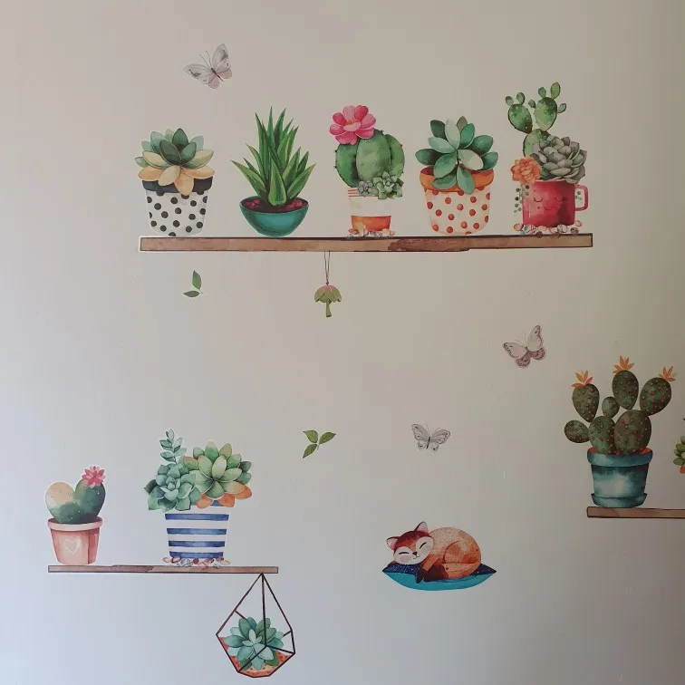 Наклейка на стену в горшке, кактус, для спальни, гостиной, ТВ, дивана, фоновое украшение, искусство, Декор для дома, съемная самоклеящаяся наклейка s