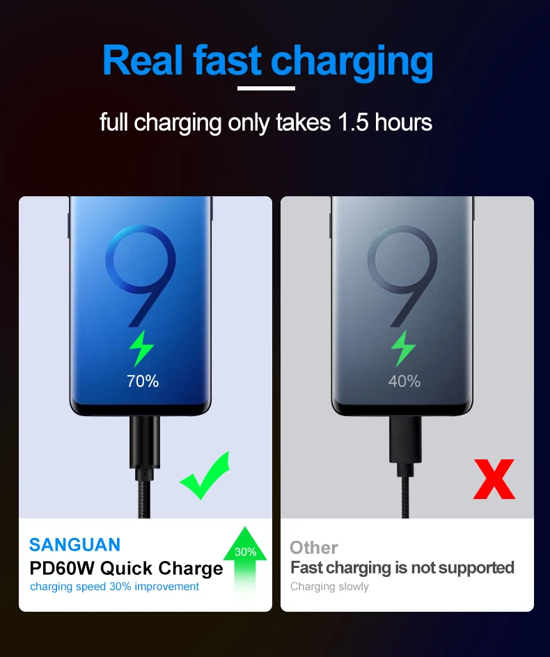 2. Быстрая передача данных-кабель является стандартным Проводом USB 3,1, обеспечивает сверхвысокую скорость + передачу данных со скоростью до 5 ГБ/сек..
