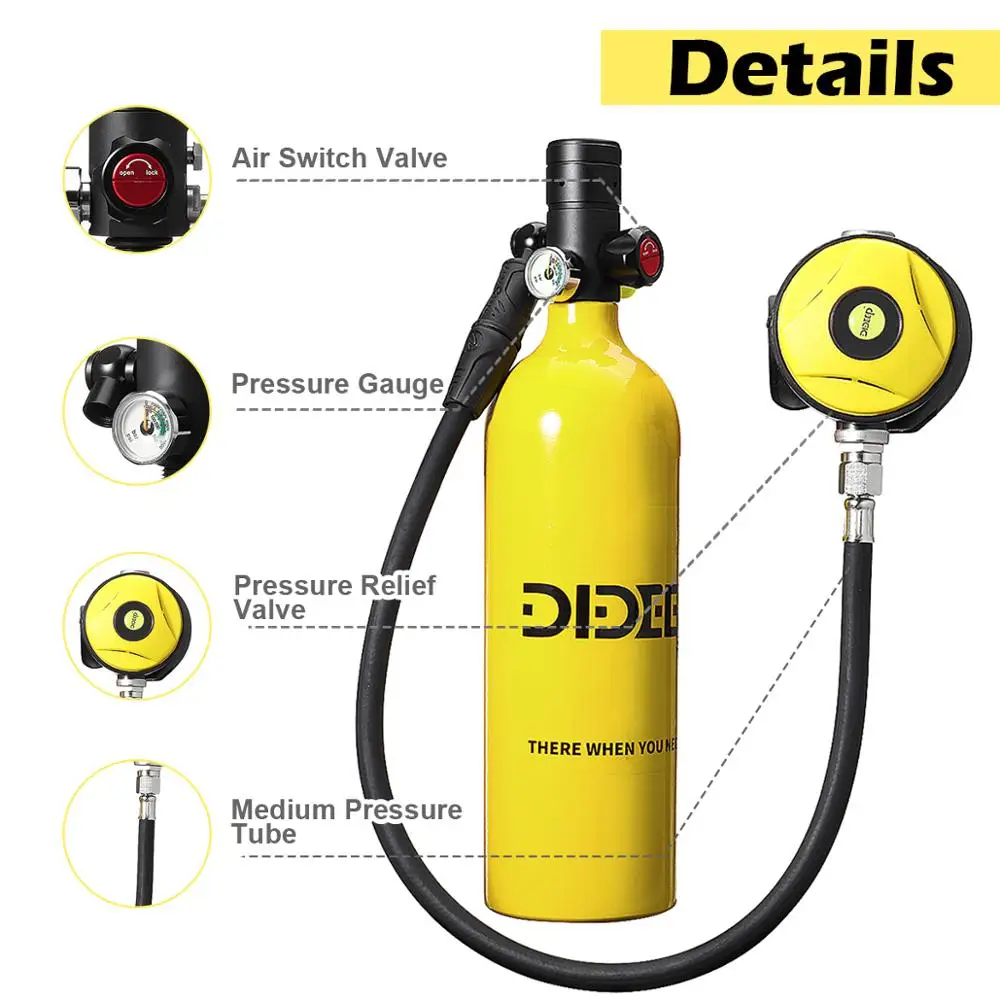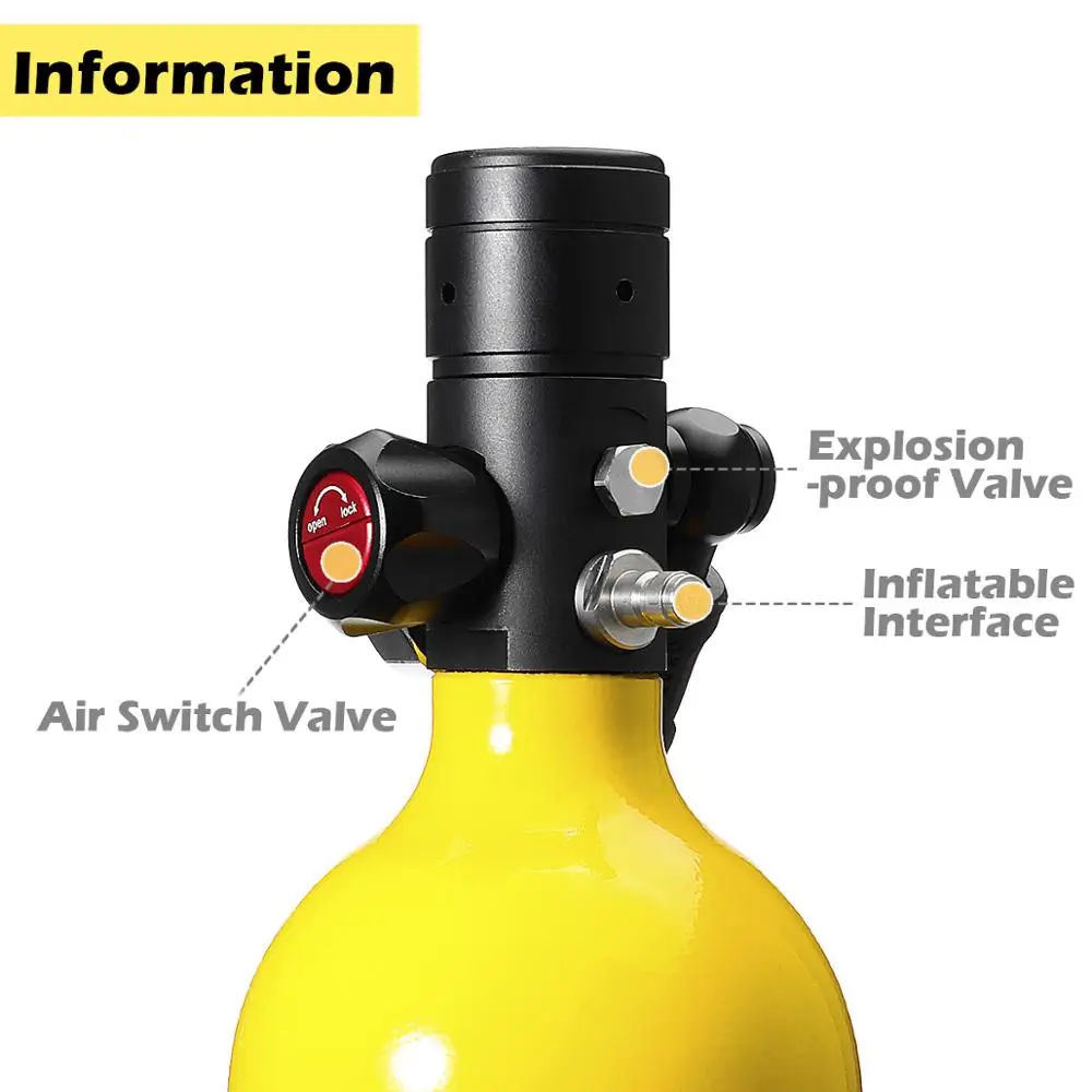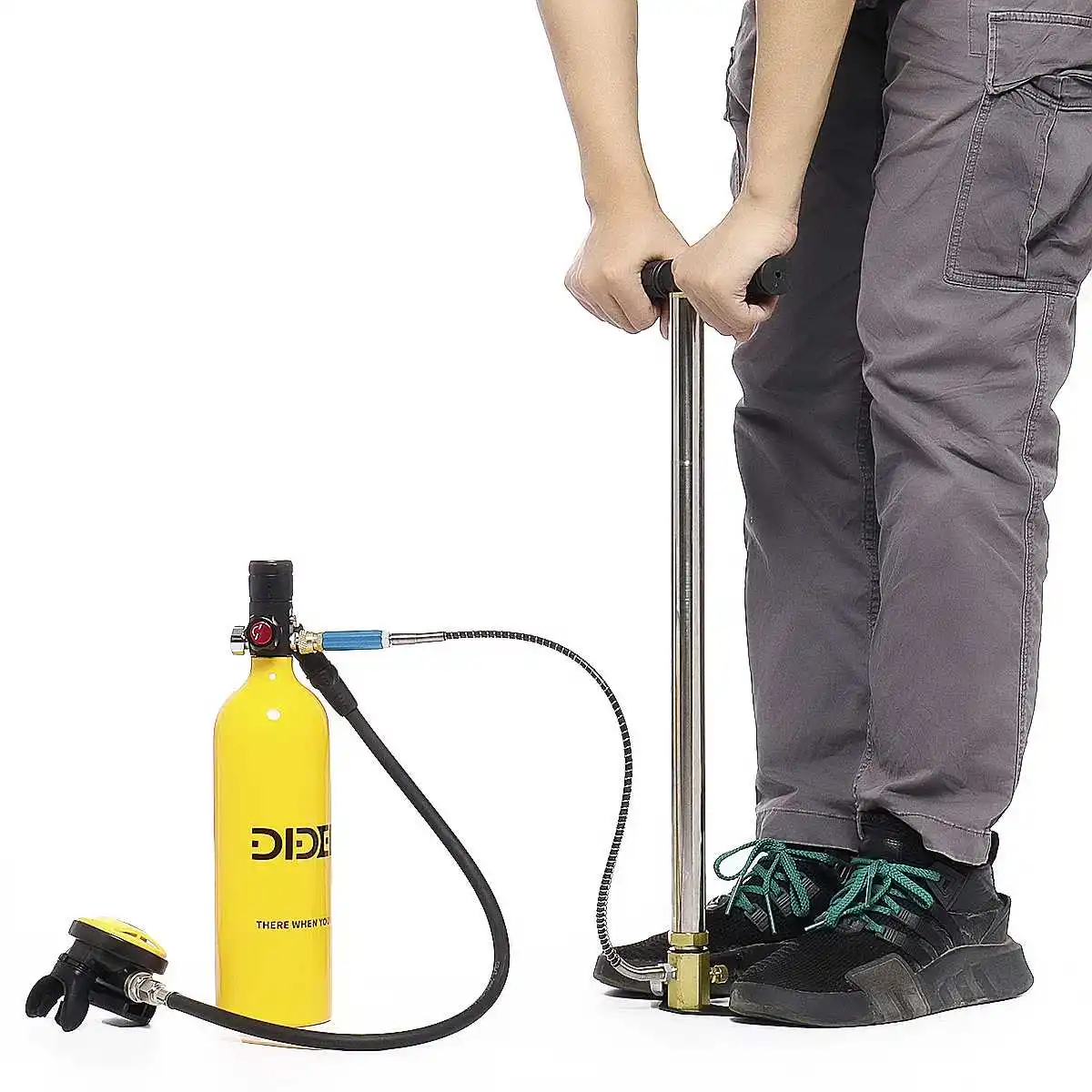 Особенности:-Компактный портативныйЛегкий,Легко носить с собой.-Дышите подводным плаванием с полной свободой.-Изготовлен из авиационного алюминия и соответствует производственным стандартам оборудования для дайвинга.-Дыхательное соплоИзготовлен из пищевого силикона, КоторыйБезопасный и без запаха.-Манометр имеет функцию освещения, вода остается чистойНа 80 метров. Изготовлен из нержавеющей сталиВодонепроницаемый, устойчивый к коррозии, высокая твердость и долговечность.