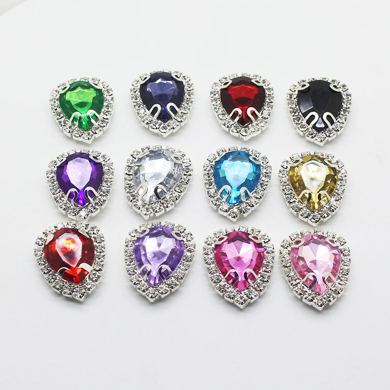 Разноцветные акриловые пуговицы 10 шт.лот 20*25 мм, металлические стразы, пуговицы для украшения свадебного платья, сделай сам, аксессуары для ручной работы