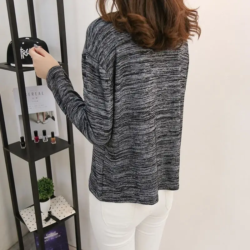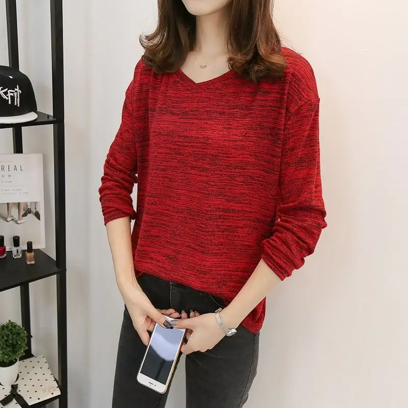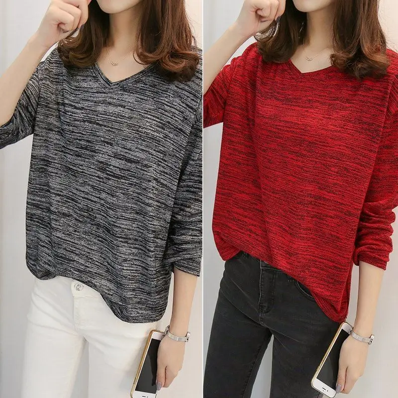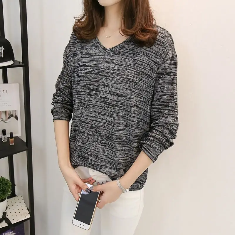 Женская весенне-осенняя Стильная хлопковая блузка Рубашки Женская Полосатая элегантная темпераментная блузка с V-образным вырезом и длинным рукавом рубашки DD8321