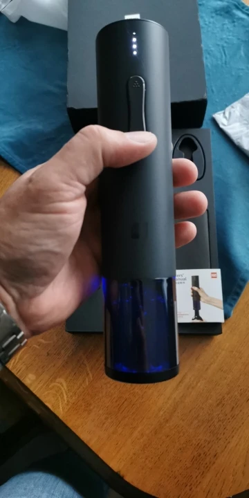 Отличный штопор, пришел за 1 мес, товар отправили быстро. Все работает, есть подсветка. упаковано было в пупырчатую пленку,но на коробке все равно замялись углы немного. Вообще , коробка очень солидно выглядит, отлично на подарок Рекомендую.