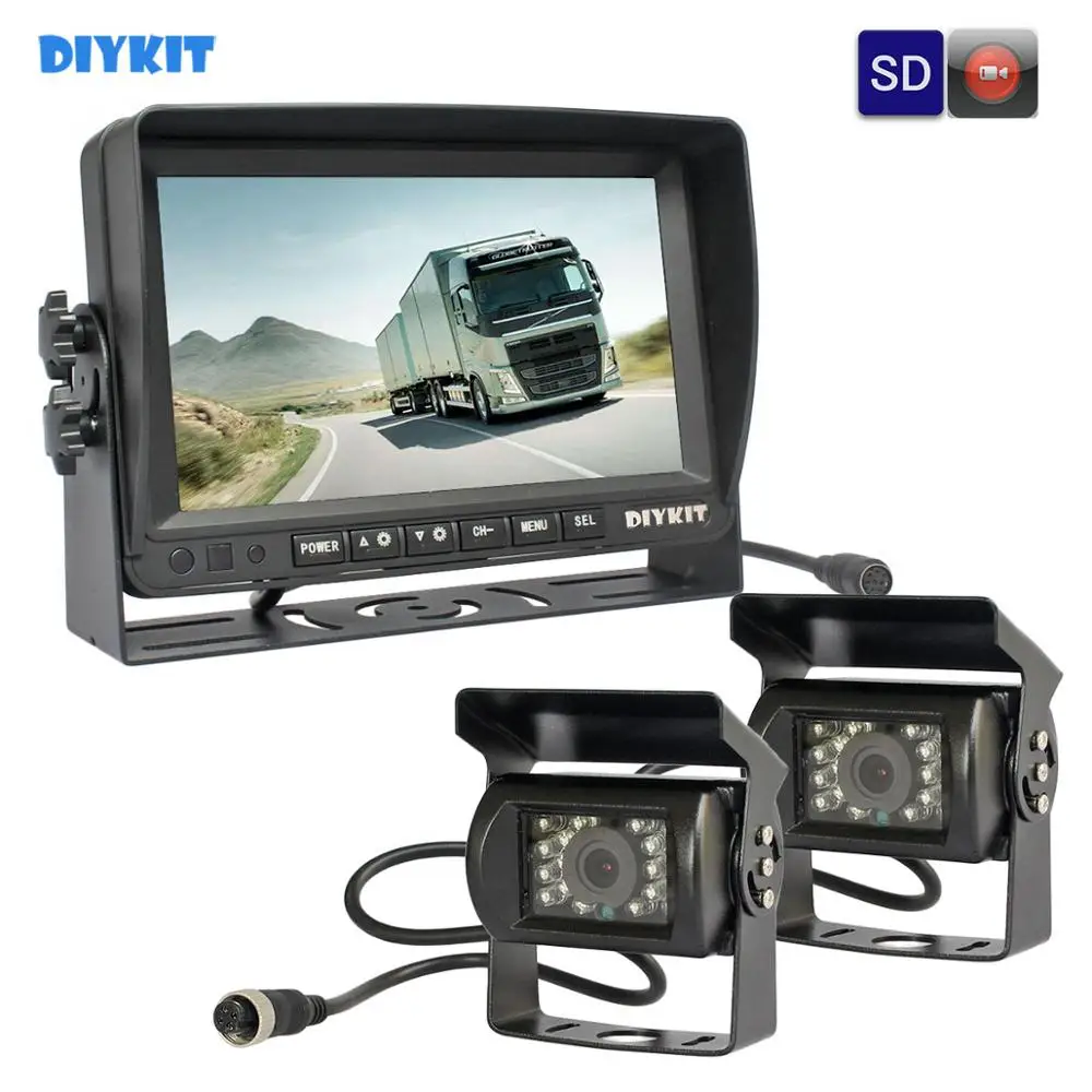 Автомобильный монитор DIYKIT AHD 7 "IPS, монитор заднего вида, водонепроницаемый IR 960P AHD, светодиодный, автомобильная камера с SD видеозаписью 1V2