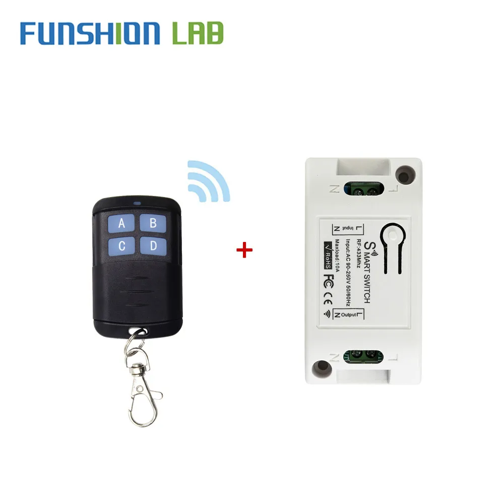 Универсальный беспроводной пульт дистанционного управления FUNSHION, 433 МГц, 85 в, 110 В, 220 В, 1CH, релейный модуль приемника и RF 433 МГц, пульт дистанционного управления