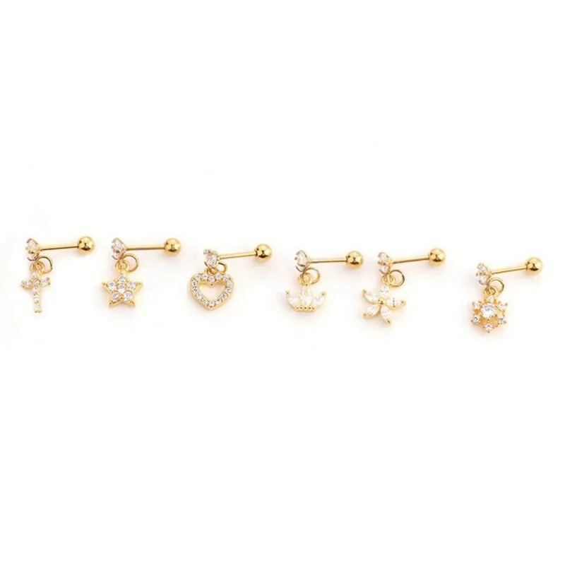Штанга с фианитами Для Пирсинга Ушей, Длинная подвеска-сердце, звезда, крест со сверкающими фианитами, диаметр козелка уха, Люк, 1 штука