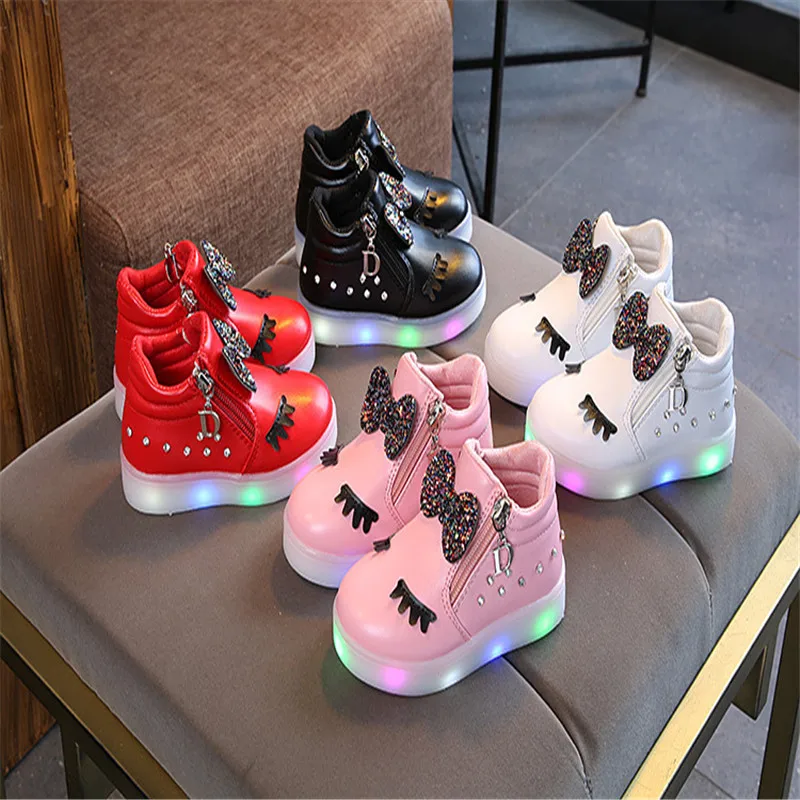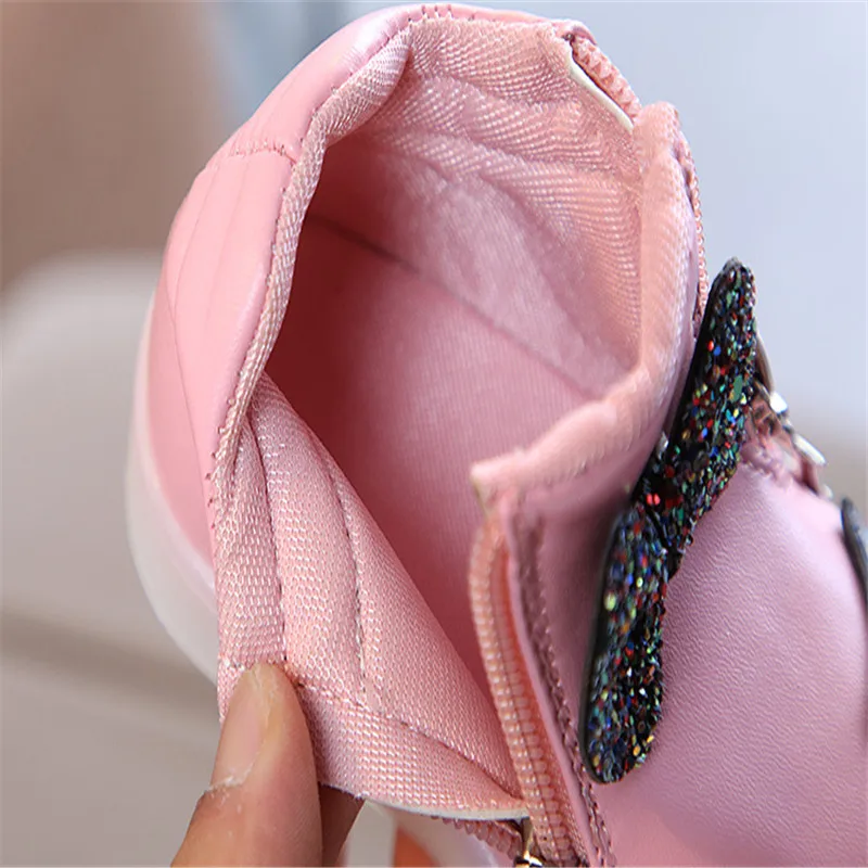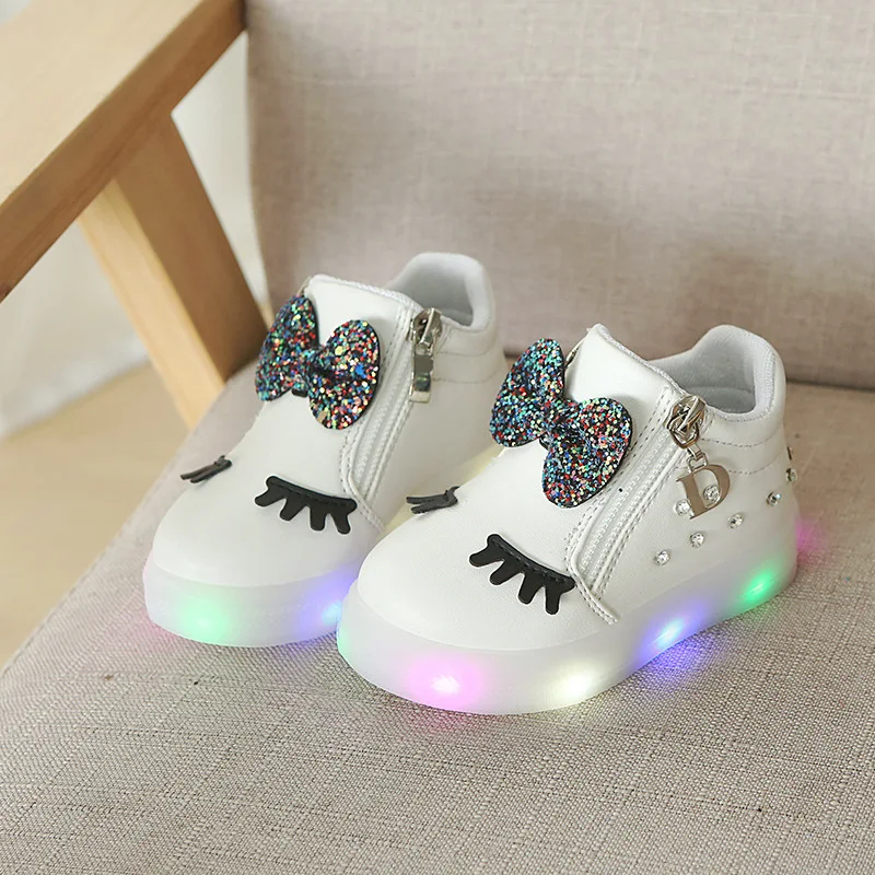 Детские светящиеся кроссовки, кожаная обувь для девочек, размеры 21-31