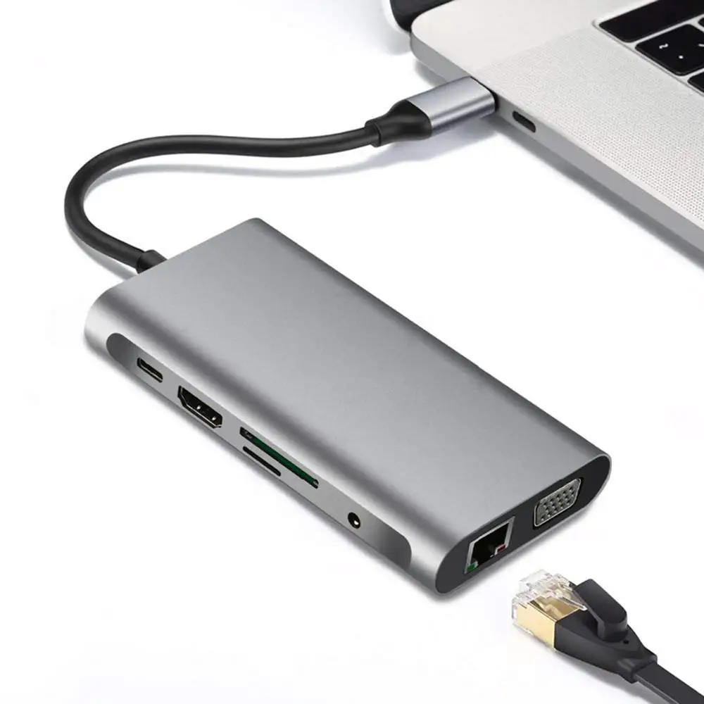 10 в 1 usb-хаб 3.0 Тип C концентратор к VGA + RJ45 Тип C до 4K HD C PD SD устройство для считывания с tf-карт 3,5 мм аудио VGA USB 3,0 концентратор #50