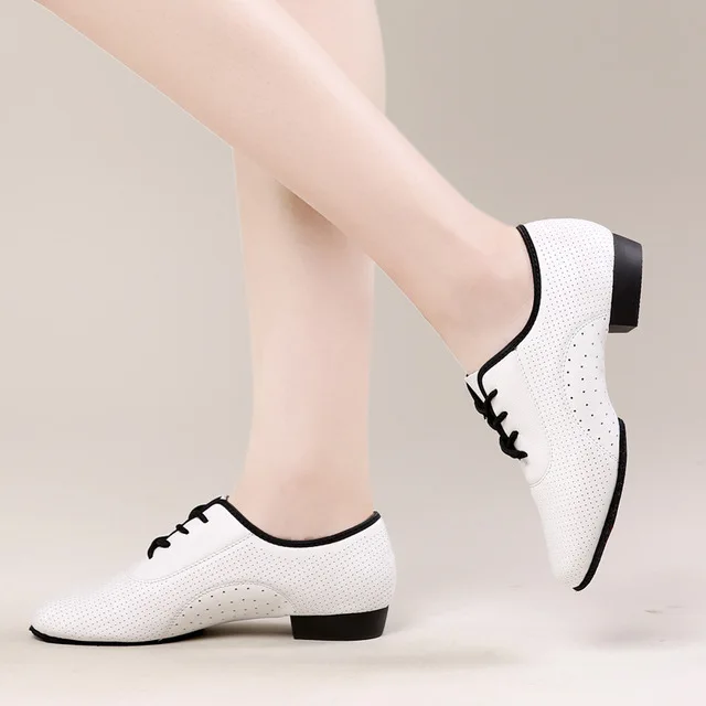 Кроссовки мужские кожаные из воловьей кожи, белые, для бальных танцев