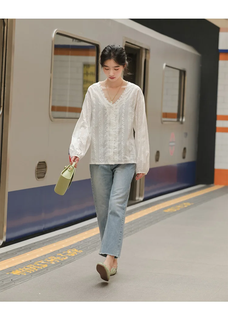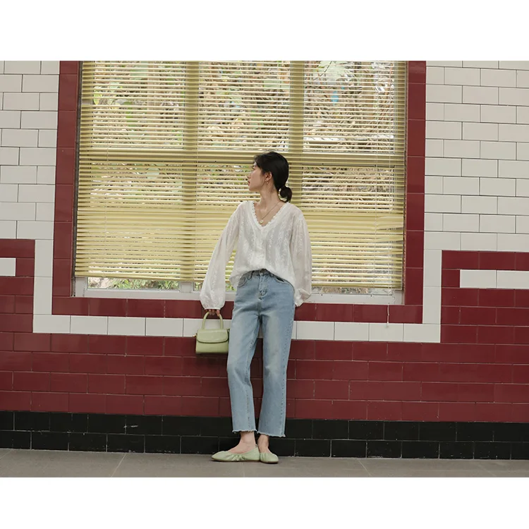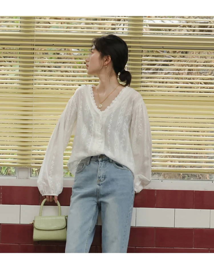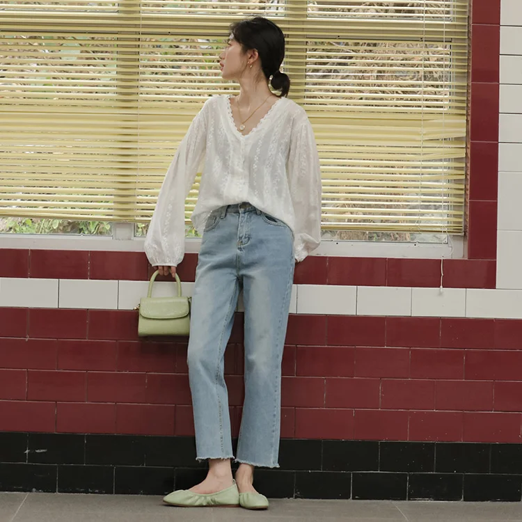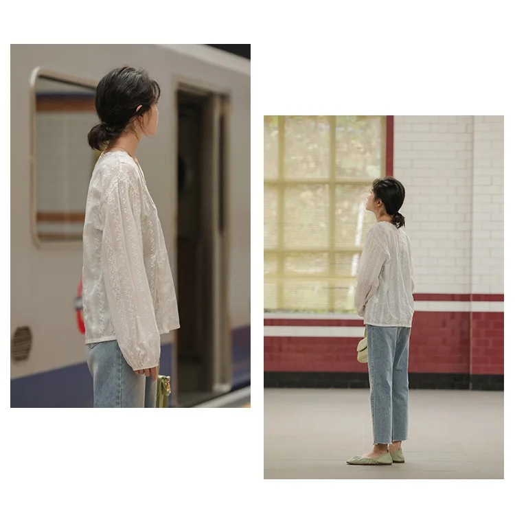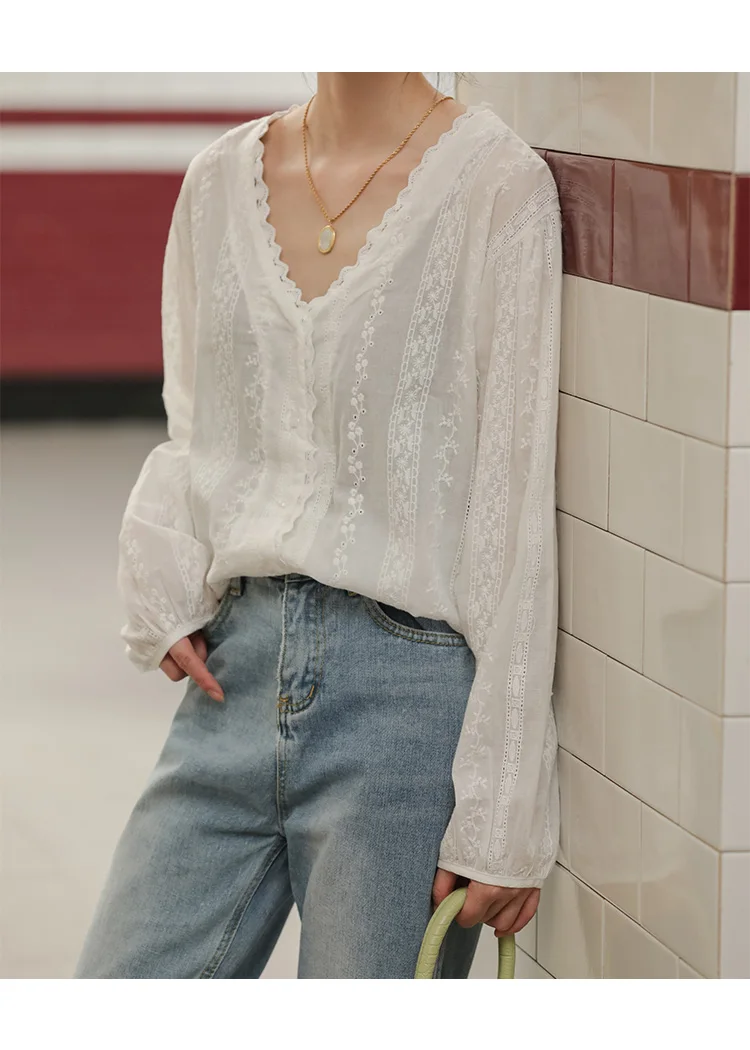 Кружевная белая женская блузка с вышивкой, летние женские топы, Повседневная Женская блузка, рубашка с длинным рукавом из льна и хлопка для девочек, Новинка
