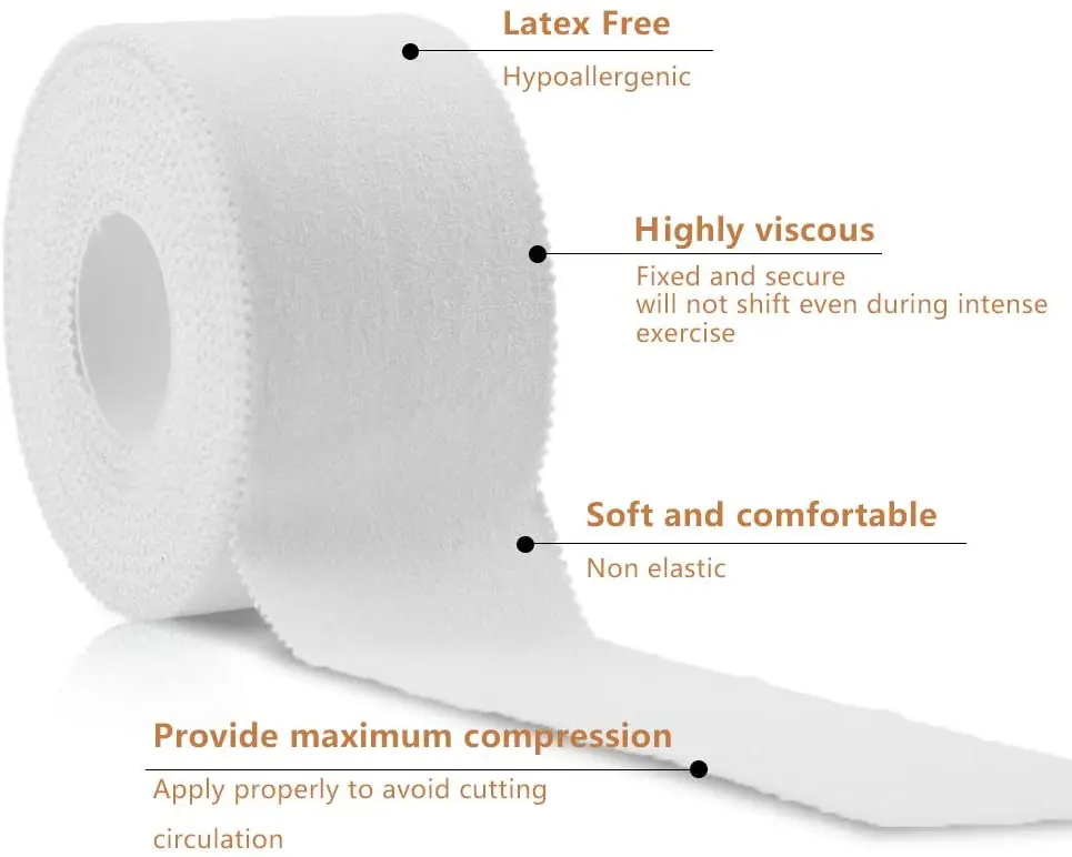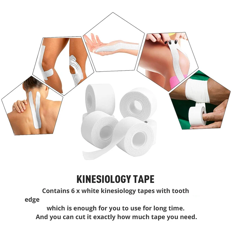 6 х белая спортивная лентаПожалуйста, не растягивайте ленту и не Режьте ленту на очень тонкую часть, это может привести к потере эластичности спортивной ленты.