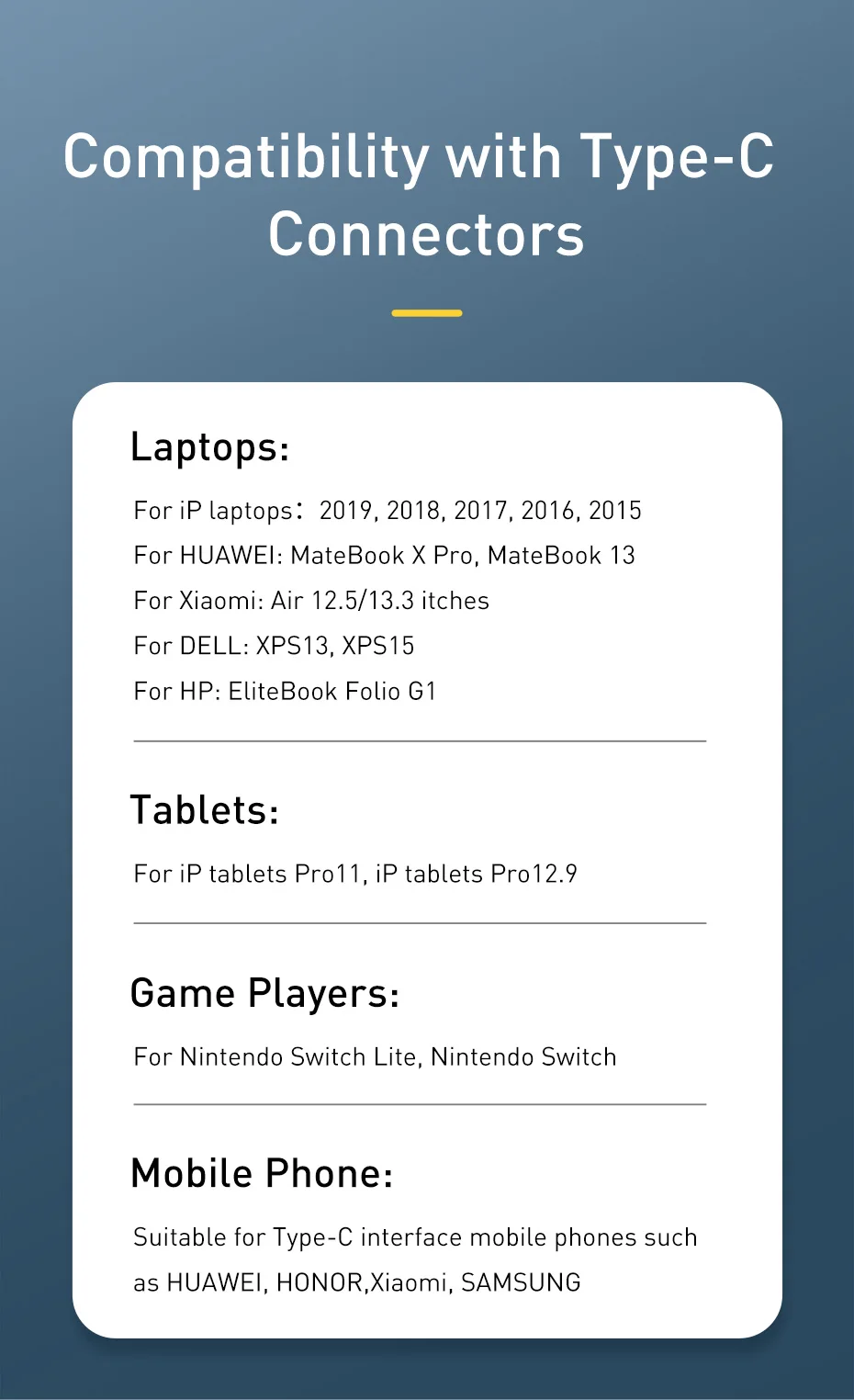 Baseus 100 Вт USB C к USB Type C кабель для Huawei Samsung S20 QC 3...