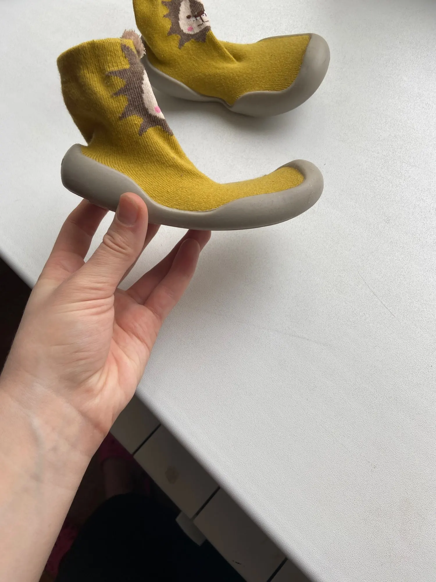Хорошая альтернатива обычным тапочкам, не слетают хорошо тянутся, правда нам ещё чуть великоваты брала с запасом... цвета яркие четкие) в магазине такое видела за 1300 р, а тут просто подарок. Всем рекомендую