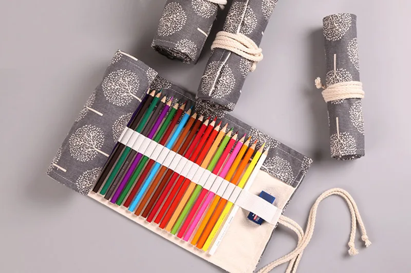 Холщовый рулонный чехол-карандаш для девочек и мальчиков, школьный пенал для карандашей чехол, милый картридж для дерева, пенал, большие круглые канцелярские принадлежности, набор ручек