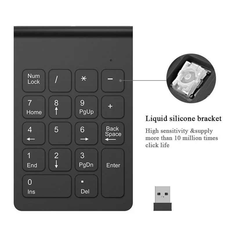 Маленький размер, 2,4 ГГц, беспроводная цифровая клавиатура с цифро...