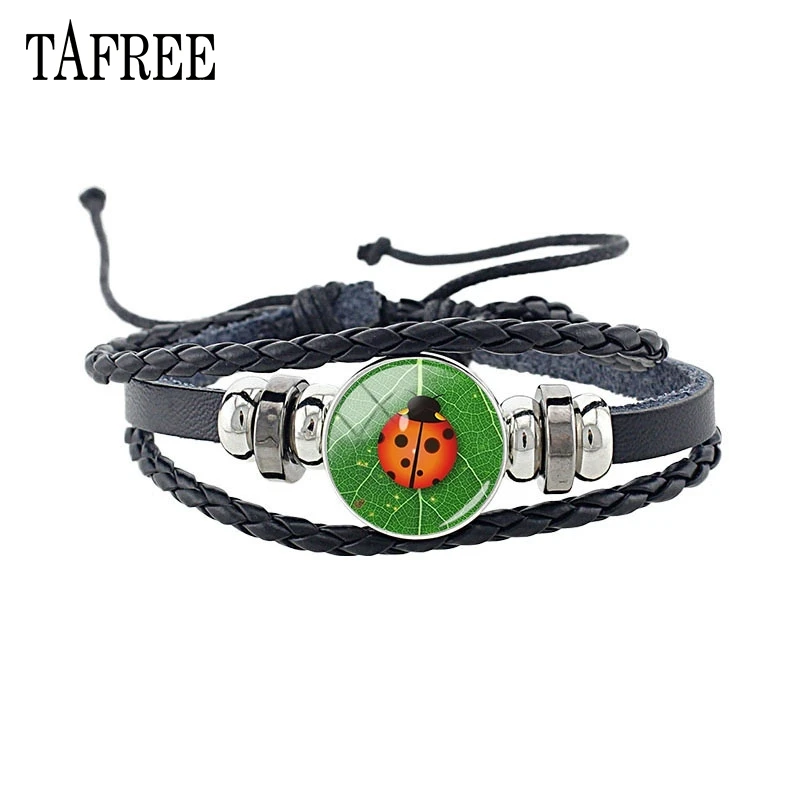 TAFREE Красный Божья коровка pulseras mujer moda 2020 полезные насекомые на зеленом фоне растения и цветы браслеты браслет NT125