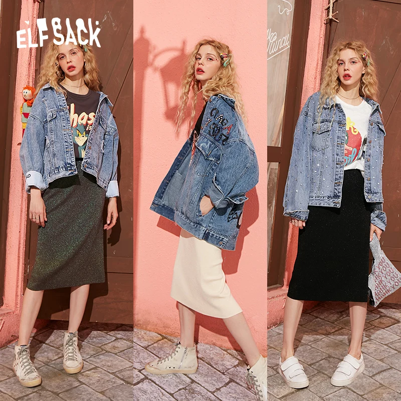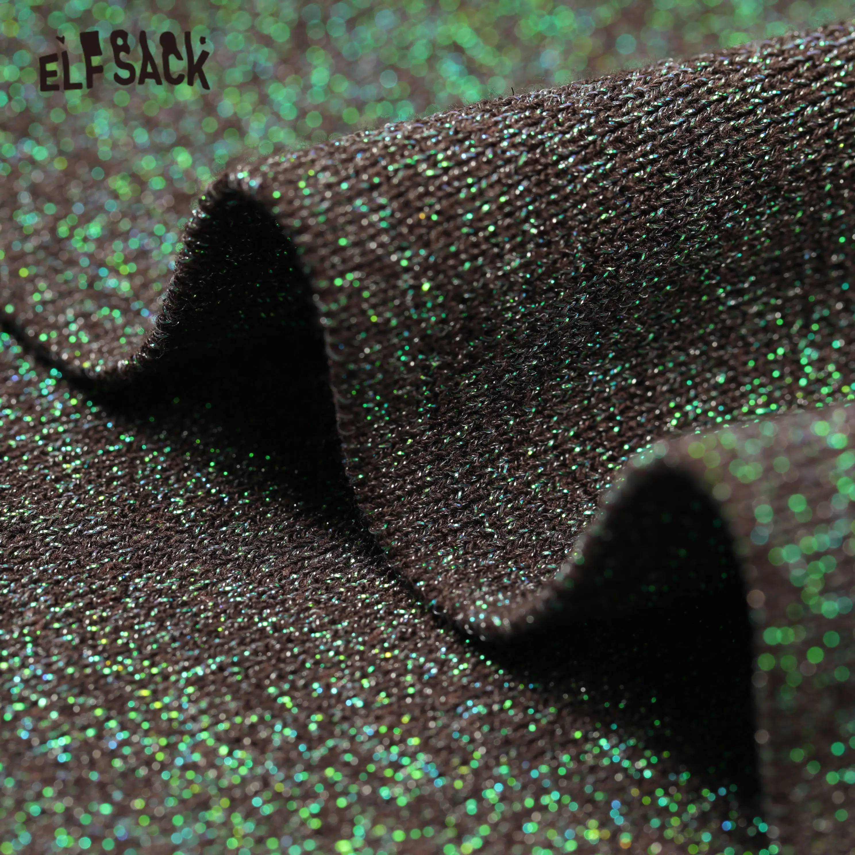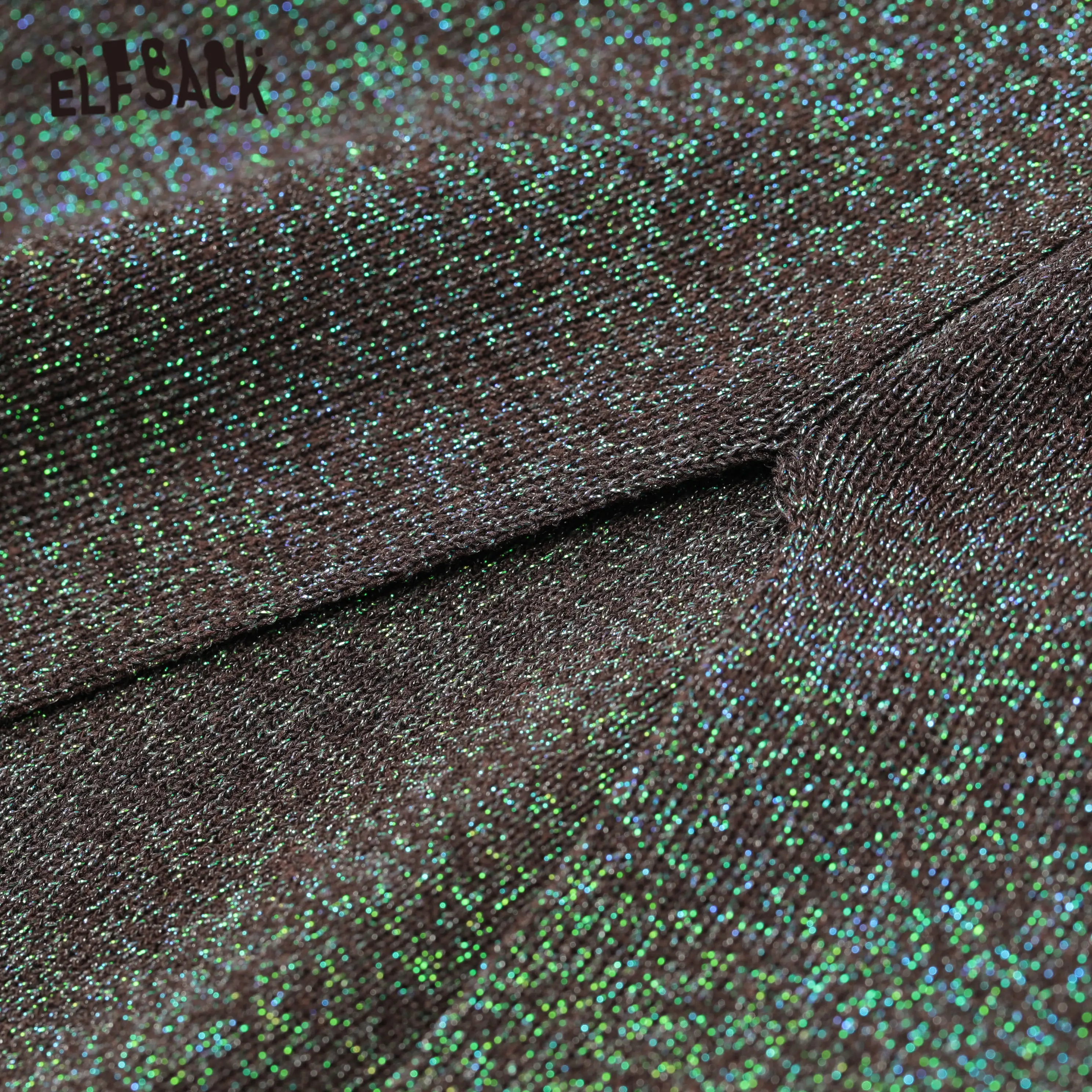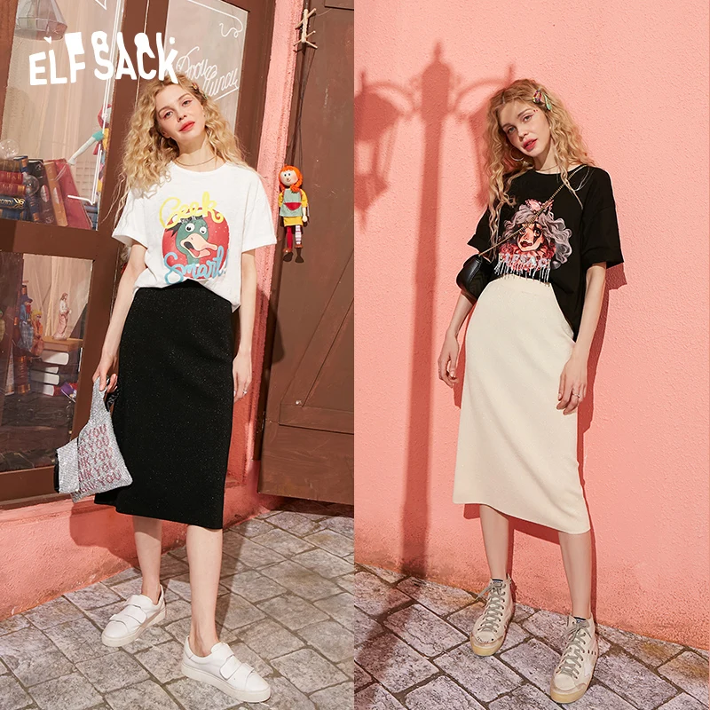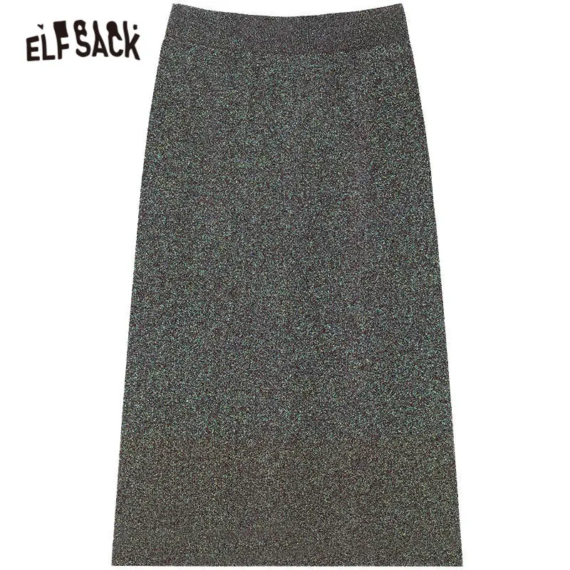 Женские повседневные вязаные юбки ELFSACK, черные однотонные юбки с блестками и разрезом сзади, с высокой эластичной талией, весна 2020