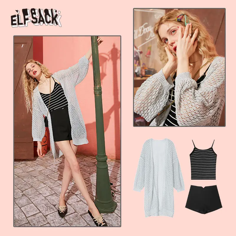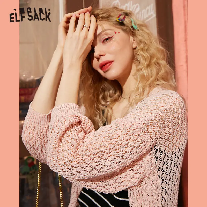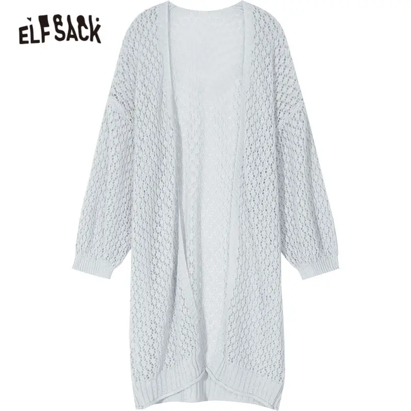 Женский однобортный Кардиган ELFSACK, белый однотонный кардиган с вырезом и рукавами-фонариками в Корейском стиле, весна 2020