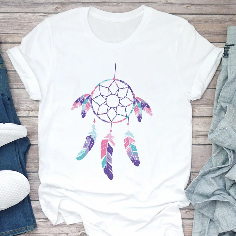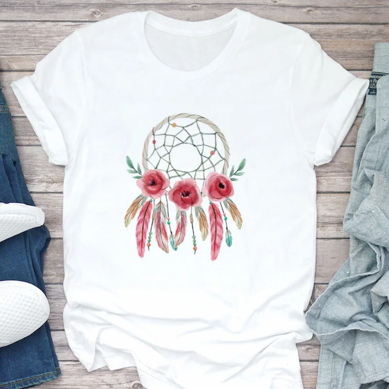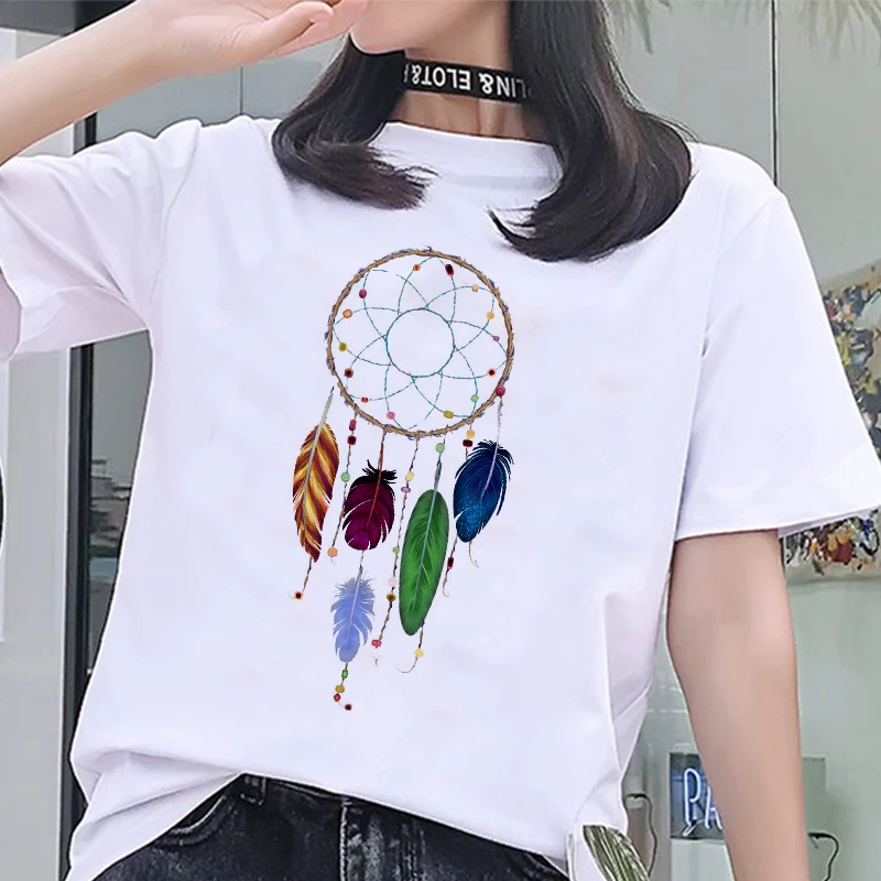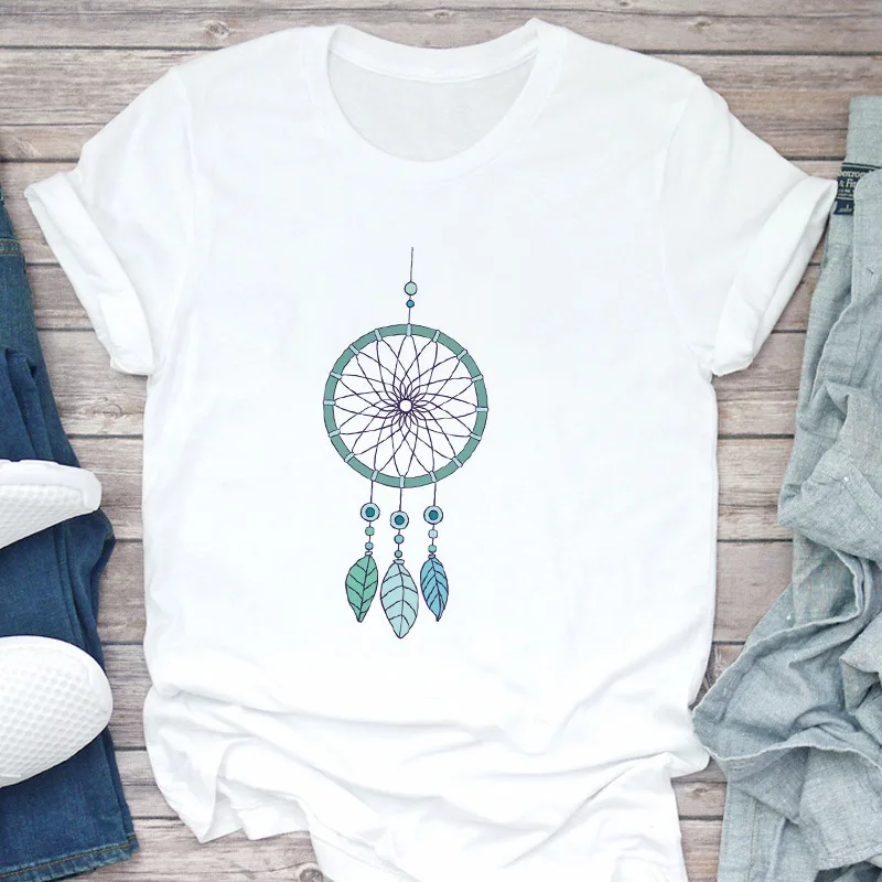 Летняя модная женская Футболка Harajuku с принтом Ловец снов, футболка для отдыха с коротким рукавом, белые топы, женская футболка