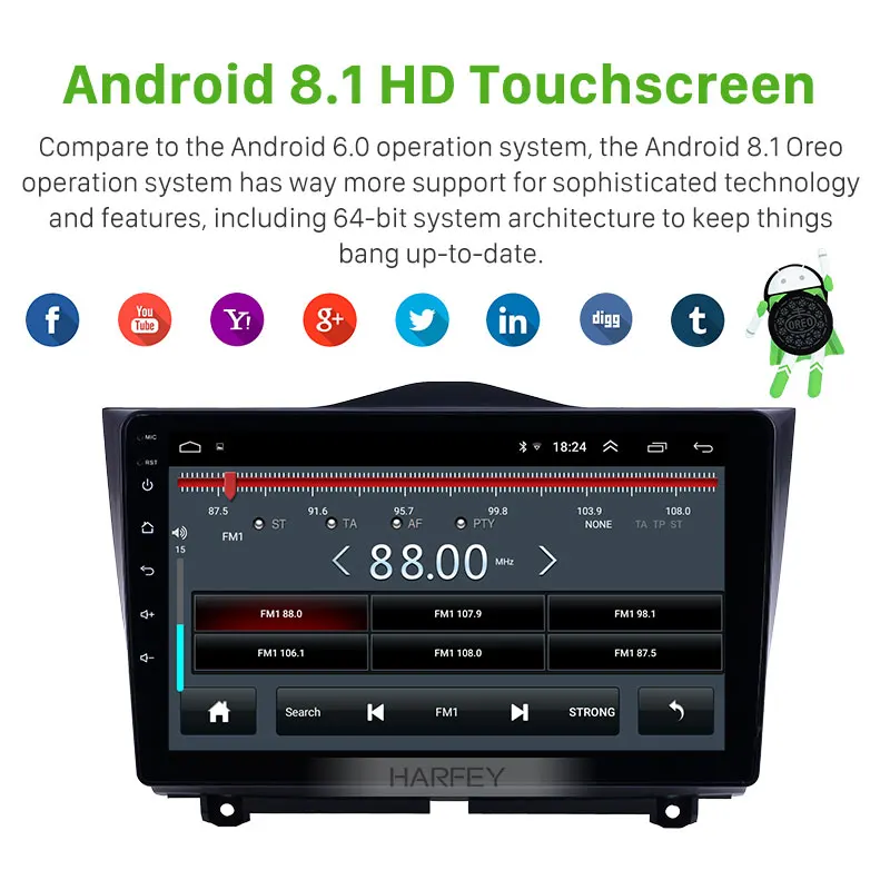 Автомагнитола Harfey для Lada Granta, Автомобильная магнитола с 9 "сенсорным экраном 9 дюймов, Android 8,1, HD, GPS, AUX, поддержкой Carplay, DAB +, DVR, OBD, 2018