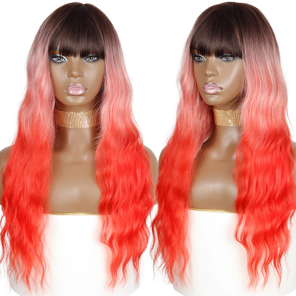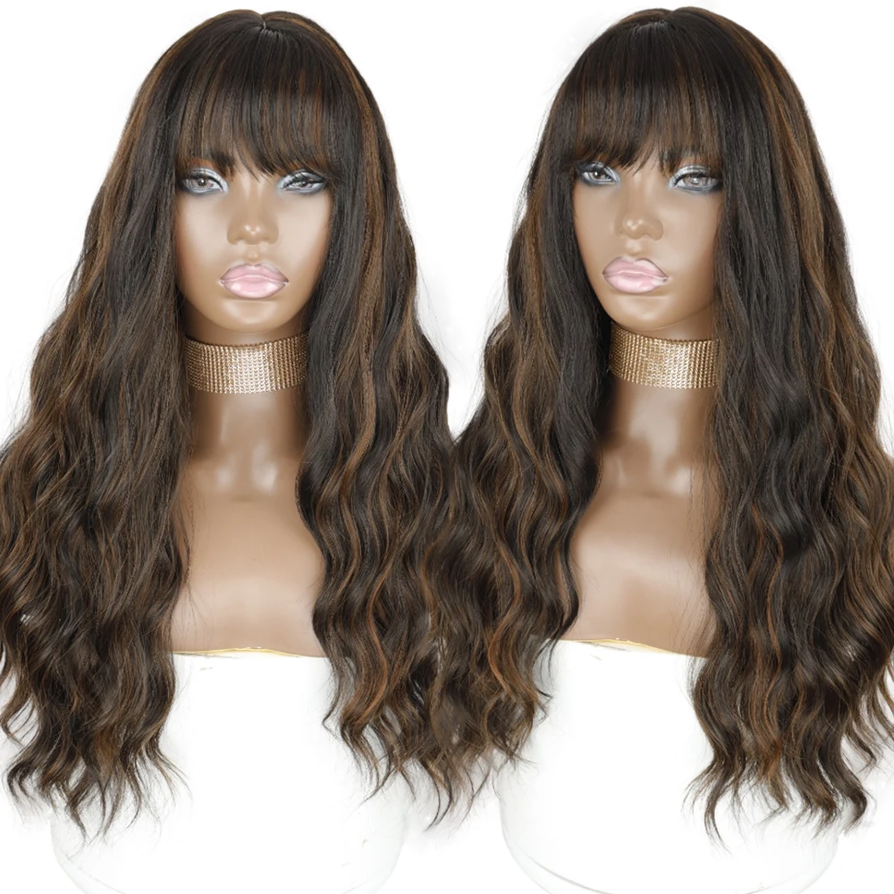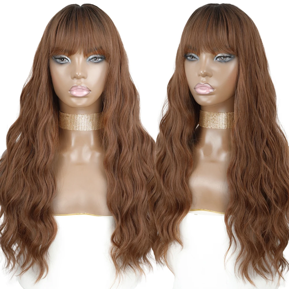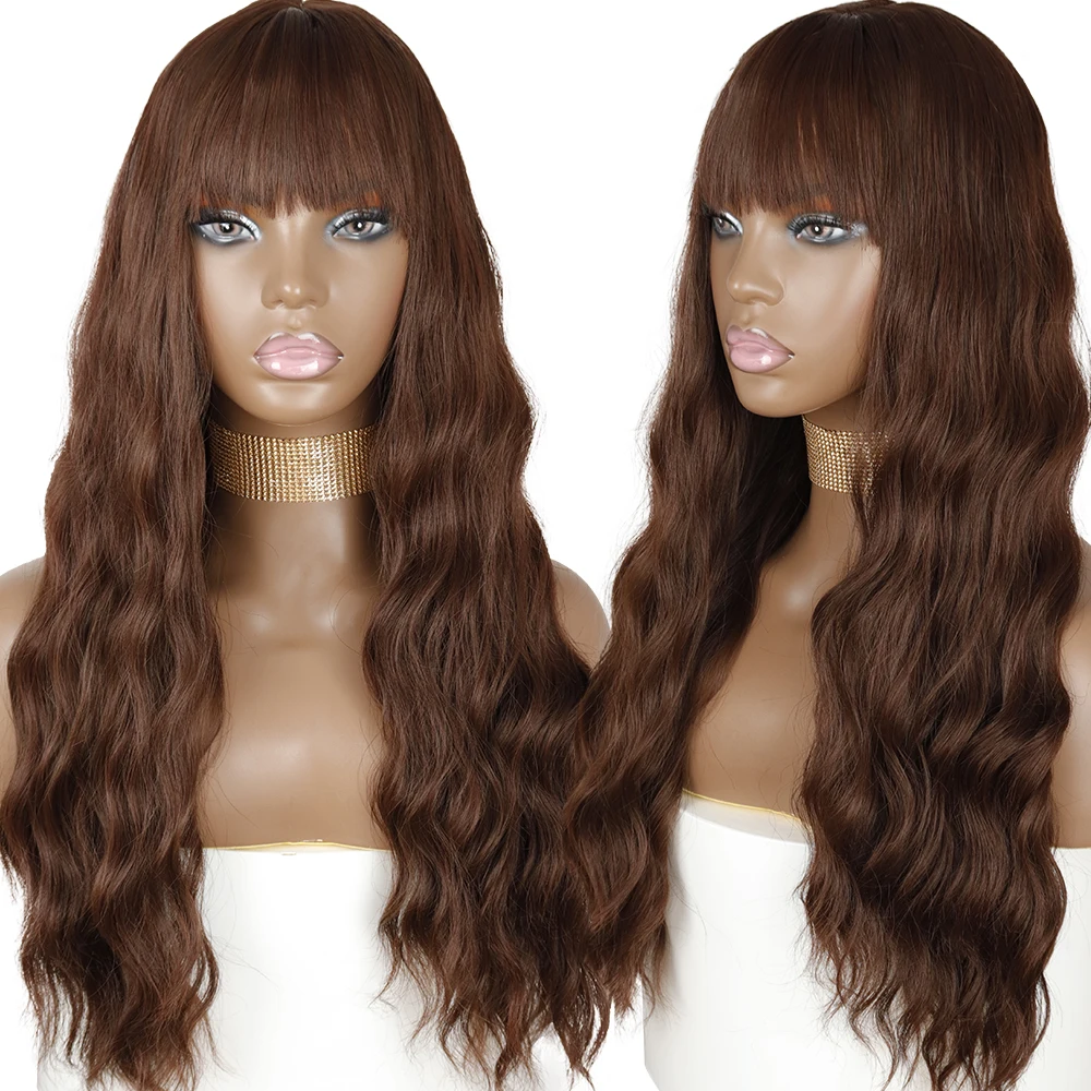 Длинные Синтетические парики AZqueen с челкой, натуральный волнисты...