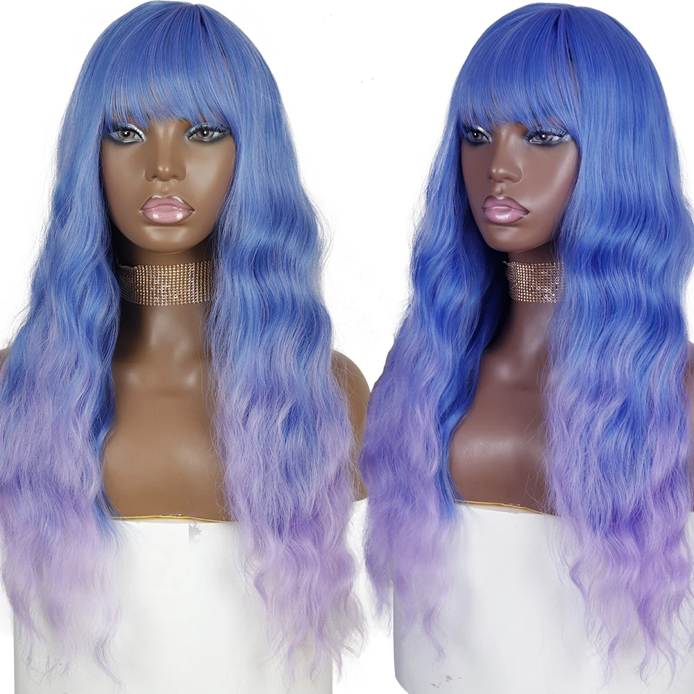 Синтетические длинные синие парики с эффектом омбре AZQUEEN, парики высокой плотности для чернокожихбелых женщин, волнистые парики для косплея