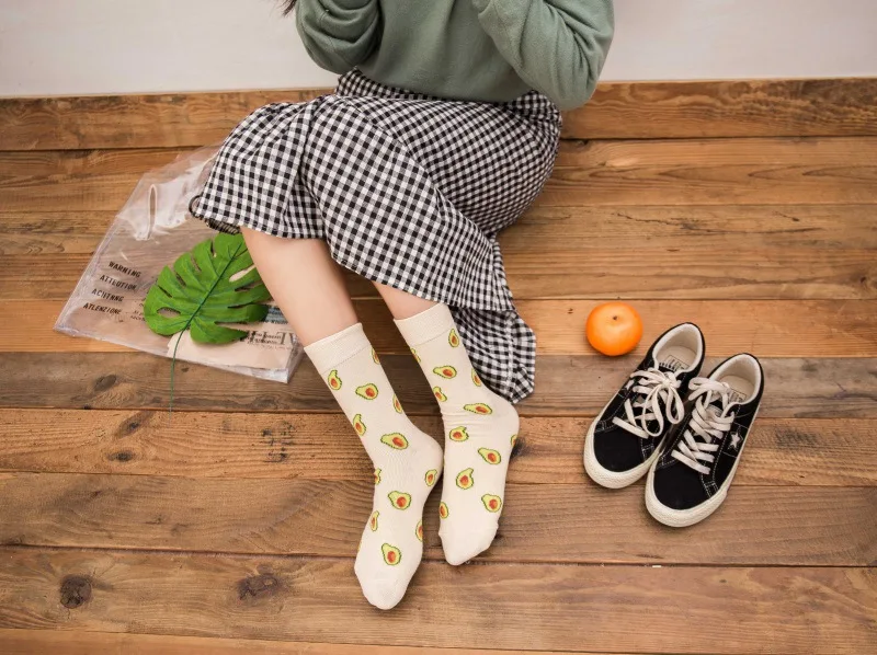Забавные носки милые Мультяшные Фрукты Банан и лимон ананас авокадо еда счастливые японские Харадзюку носки для скейтборда розовые зимние носки