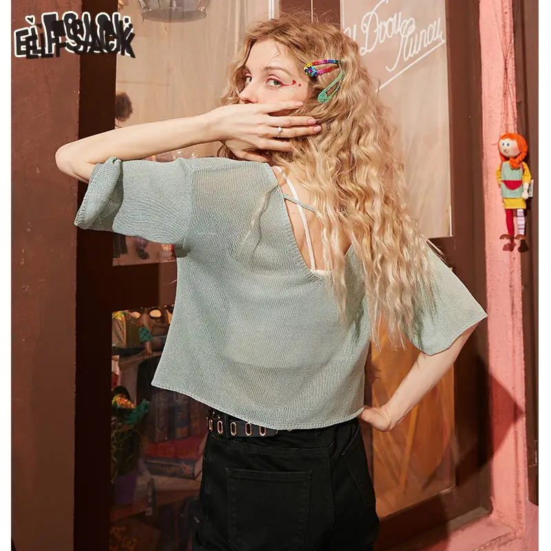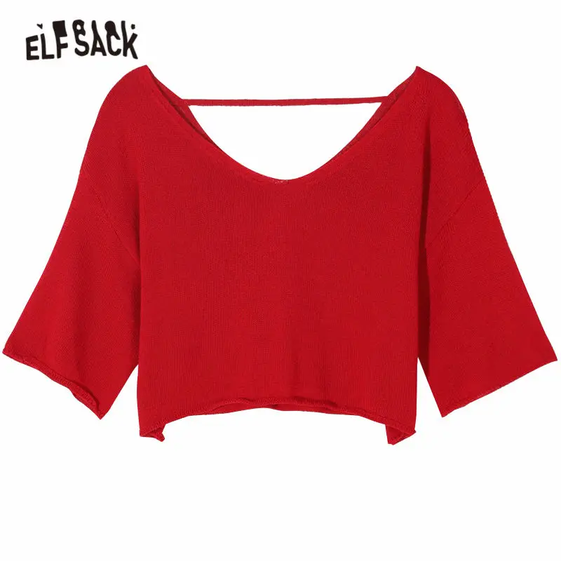 Женская трикотажная футболка ELFSACK, однотонная Однотонная футболка с вырезом, укороченный топ в Корейском стиле, лето 2020