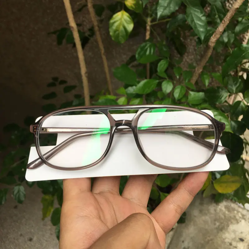 Материал оправы очков: ацетат ручной работы Линзы: антибликовые Асферические полимерные, оптические линзы Размер: больше размера d Цвет: прозрачный серый Качество: Премиум Советы: если у вас очень большая голова, это именно то, что вы ищете. С установленными оптическими линзами вы можете использовать их для защиты глаз, остановки компьютера или мобильный телефон излучения.