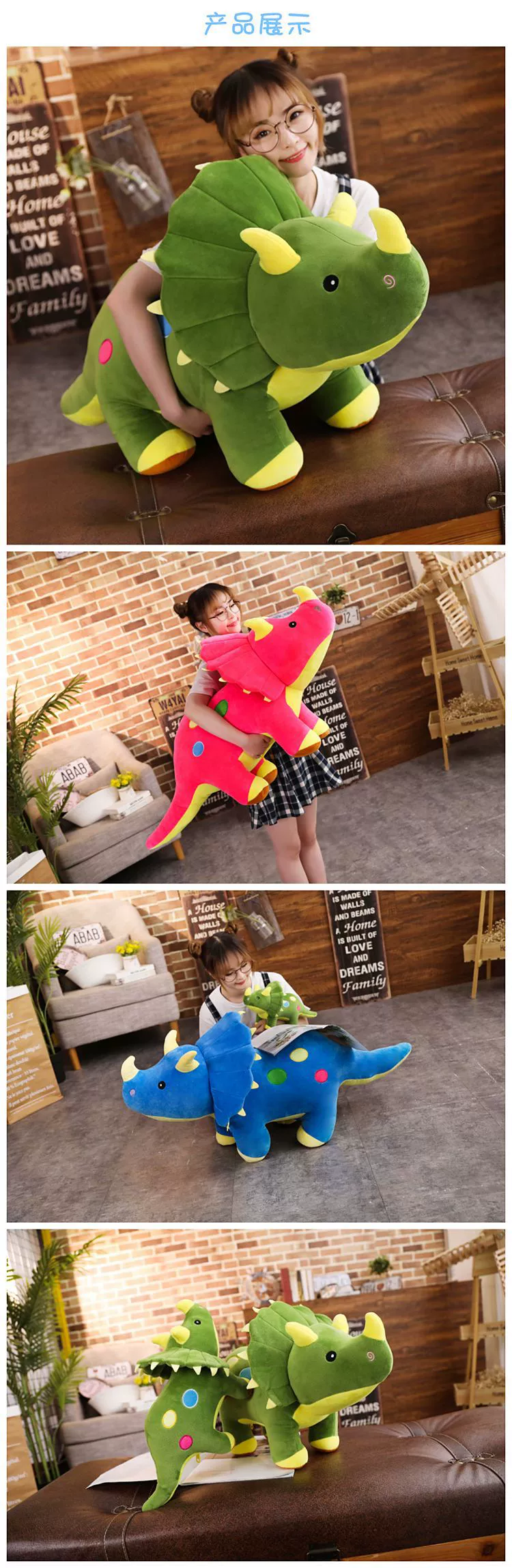 Динозавр Трицератопс 40-80 см, плюшевые игрушки, Мультяшные мягкие ...