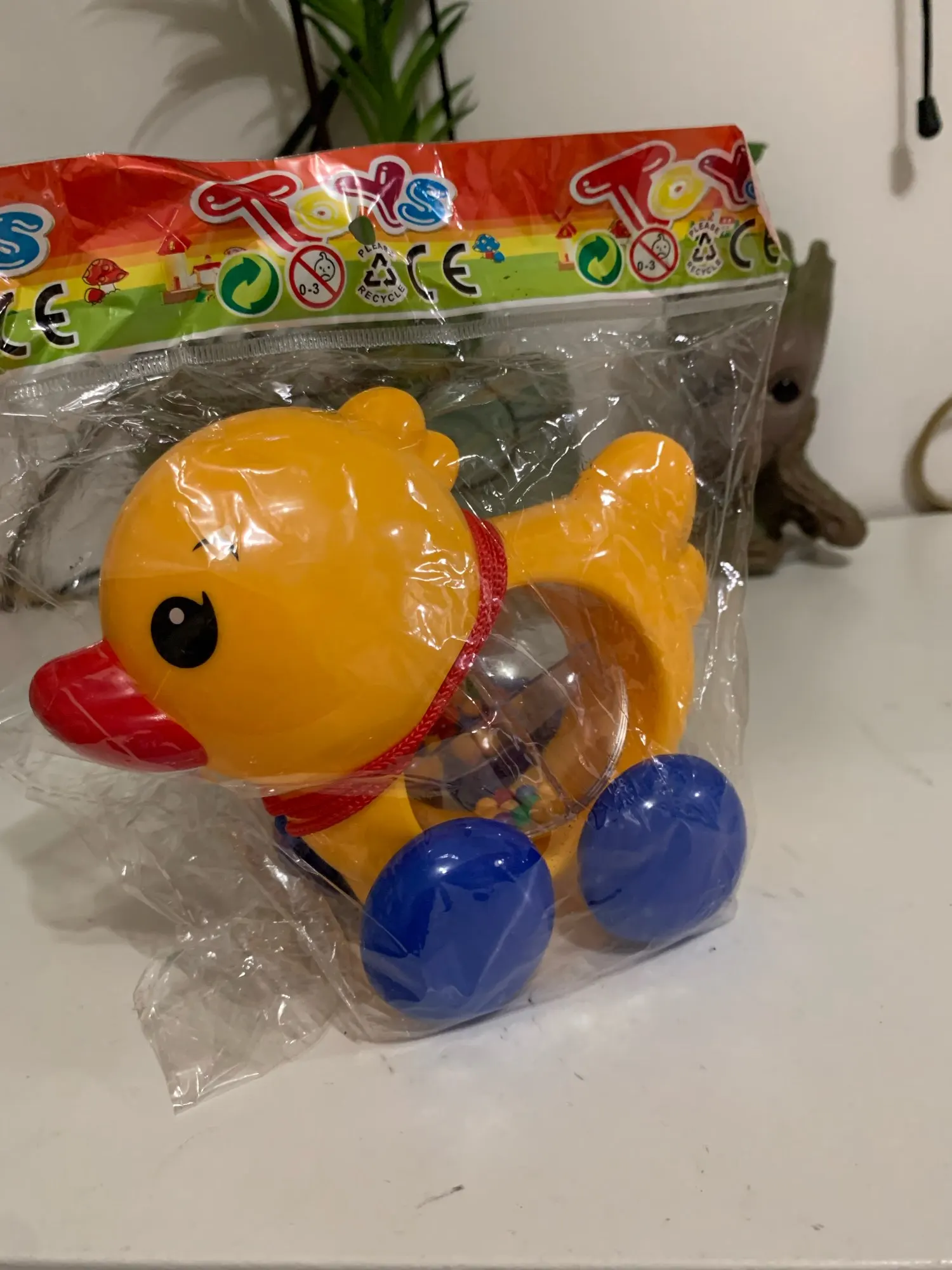 прикольно. у нас шарик прозрачный и маленькие шарики внутри. уточка прикольно двигается, когда катится. немного шумновата, но в этом и есть смысл.