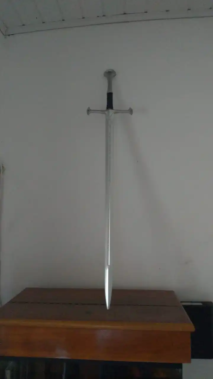 Очень красивый изящный меч. Он точно такой, как на картинке. Я боялся, что он будет не таким. Боялся, что он будет детским, или выглядеть дешево. Но это не так. Меч серьезный, изящный, подходит для девушки. 104 см.длина. Меч из EVA Plast, так мне кажется. Материал похож на резину, покрыт серебряной краской, местами затемнен, как положено. К сожалению, кончик меча пробил упаковку при транспортировке, и краска на кончике была поцарапана. Но это не страшно. Я подкрашу его акриловой серебрянной краской. В упаковке была искривлена крестовина меча. Но оказалось, что ее легко выправить руками, потому что это свежий материал. И меч в отличном состоянии. Эльфийка будет довольна. Рекомендую покупать, и рекомендую покупать еще и щит у этого продавца. Получилось так, что меч пришел в двух посылках: В одной пришли кожаные ножны для меча, которые продавец любезно подарил мне бесплатно, как сюрприз. После этого пришла вторая посылка с мечом. Не волнуйтесь, все честно.