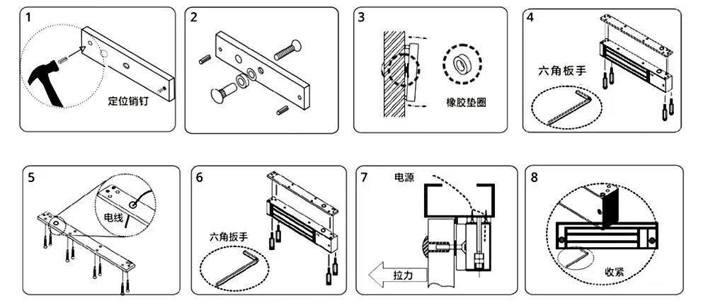 7. Закройте дверь, чтобы проверить тяговое усилие, можно добавить или удалить скрепленную шайбу, чтобы отрегулировать адсорбционную поверхность пластины между корпусом замка;